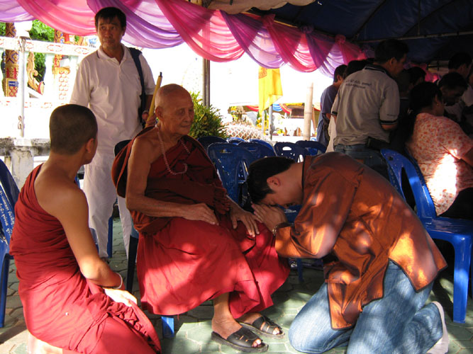 กาเยนะ วาจายะ วะเจตะสาวา สังเฆ กุกัมมัง ปะกังตังมะยายัง สังโฆ ปะฏิคันหาตุ อัจจะยันตัง กาลันตะเร สังวะลิตุงว่า สังเฆ