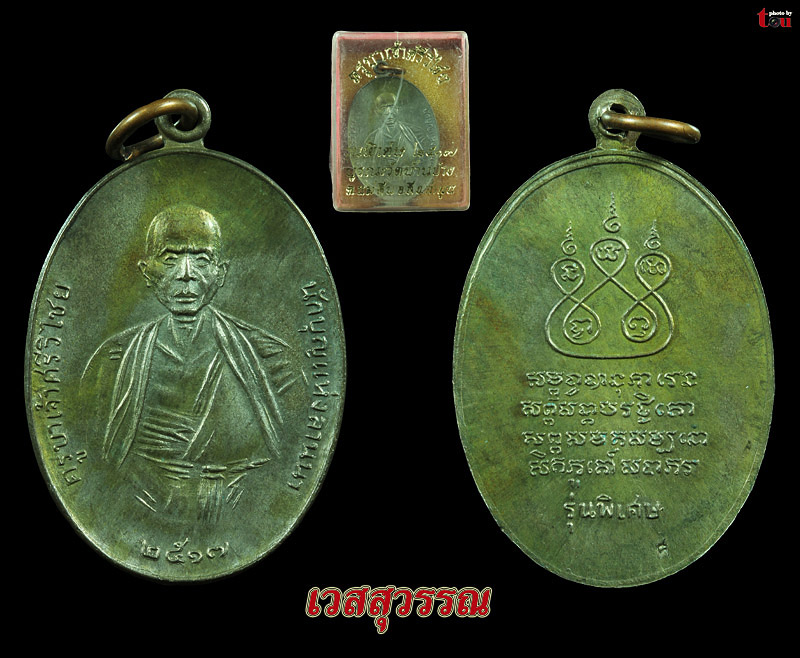 เหรียญครูบาเจ้าศรีวิชัย เนื้อนวะโลหะ เศรียนหนาม ปี ๒๕๑๗ น้ำทองกระจายครับ..........