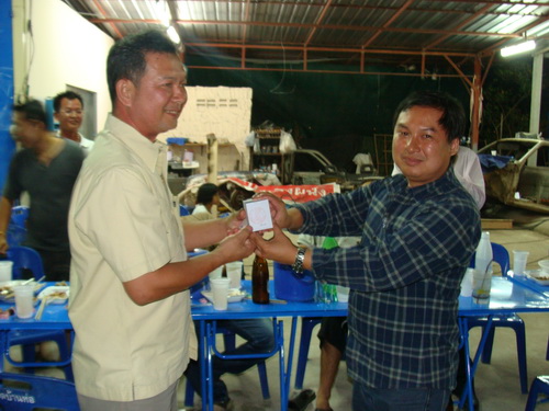 คุณต๋อง สันทราย มอบล็อคเก็ตครูบาวัดดับภัยหลังทองแดงเบอร์ 1111 ประมูลเพื่อสมทบทุนวัดแม่เตาไห ผู้ที่ชนะการประมูลคือ คุณประเสริฐ กมลทิพย์วงศ์ ในราคา 6,000 บาท