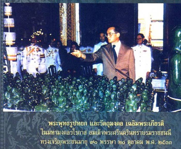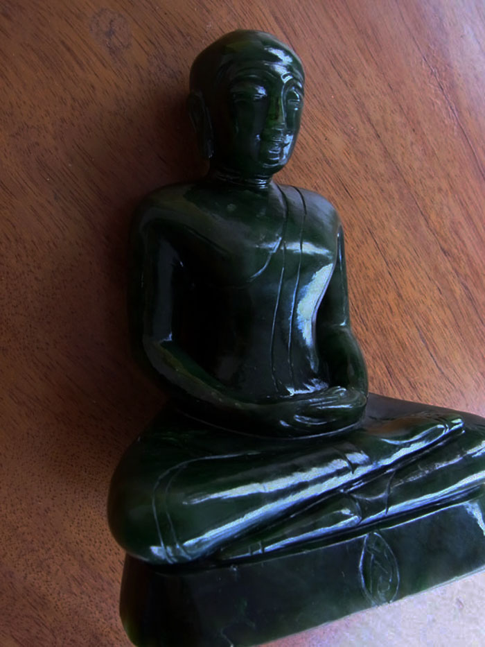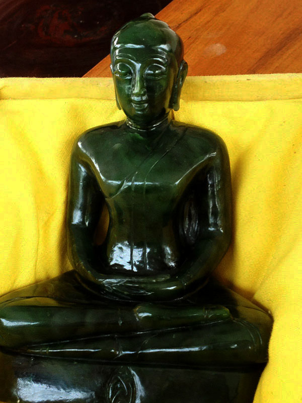 องค์นี้หยกสวยมากครับ เขียวมรกตครับ เรียกได้ว่า เกรดA ครับ หยกที่มีสีเขียวสดเข้ม มีไม่กี่องค์ครับที่เขียวสวยขนาดนี้ ส่วนมากที่เจอก็จะมีสีขาว ผสมในเนื้อหยกเยอะ บางท่านก็ตีไปเป็นปลายหยก หยกเกรด B ,C คับ ในจำนวนสร้างทั้งหมดจาก 2534 องค์ ตรงตามปี พ.ศ สร้าง องค์นี้แกะจากโรงงานที่ 1 คือ โรงงานวาลินนานกู เมืองปักกิ่ง ประเทศสาธารณรัฐประชาชนจีน คือโรงงานแม่ จึงแกะออกมาได้เหมือนองค์จริง และองค์อื่นๆ แ่บ่งส่งไปแกะที่โรงงานลูก อีก 2 แห่ง