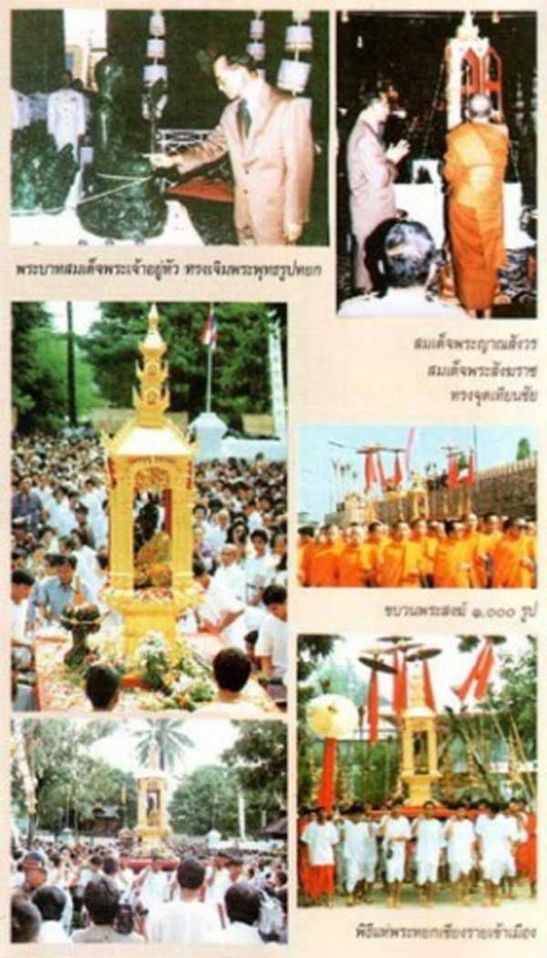 ทางจังหวัดเชียงรายได้จัดทำพิธีอัญเชิญและสมโภช“พระหยกเชียงราย” ระหว่างวันที่ ๑๖ - ๒๑ ตุลาคม พ.ศ. ๒๕๓๔ โดยในวันศุกร์ที่ ๑๘ ตุลาคม ๒๕๓๔ ได้เริ่มเคลื่อนขบวนรถอัญเชิญพระแก้วหยกจากวัดศรีโคมคำ อำเภอเมือง จังหวัดพะเยา และในวันเสาร์ที่ ๑๙ ตุลาคม พ.ศ. ๒๕๓๔ เวลา ๐๙.๐๙ น. ขบวนอัญเชิญพระพุทธรูปเข้าเมือง อันประกอบด้วยขบวนเสลี่ยง เจ้าประคุณ สมเด็จพระพุทธชินวงศ์ ขบวนพระสงฆ์ ๑๐๐๐ รูป และขบวนแห่งเครื่องสักการบูชา นำโดยท่านผู้หญิงบุญเรือน ชุณหะวัน ก็เคลื่อนขบวนเข้าสู่วัดพระแก้วเชียงราย