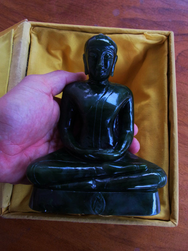 องค์นี้พึ่งนิมนต์มาสดๆร้อนๆครับ กว่าจะได้มาแสนยากครับ ยังดีที่ผู้ใหญ่ใจดีท่านแบ่งให้ครับ เพราะเป็นพระที่หายากส่วนมากก็เก็บหมดครับ เป็นพระพุทธรูปที่มีคุณค่ามากน่าบูชาครับ ทั้งคุณค่าในตัวองค์เนื้อพระพุทธรูปเอง ที่แกะจากหยกประเทศ แคนนาดา หยกที่สวยที่สุด และงดงามมากครับ และพุทธคุณครับ