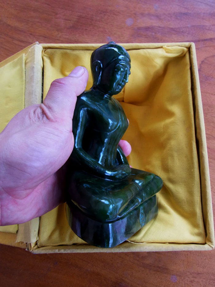 พระหยกเชียงราย หน้าตัก5นิ้วพร้อมกล่องเดิมๆ จากวัด แกะจากหยกประเทศแคนาดา พีธีใหญ่วัดพระแก้ว เป็นหยกเนื้อเดียวกัน ก้อนเดียวกัน กับองค์ที่ประดิษฐานอยู่วัดพระแก้ว จ.เชียงรายปัจจุบันนี้