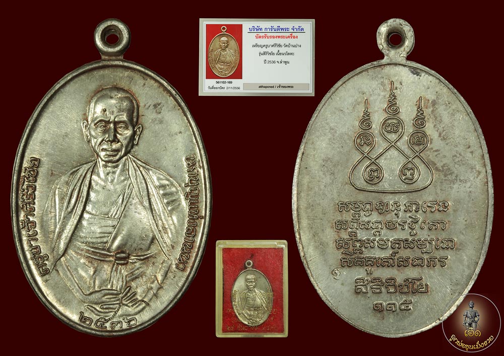 ครูบาศรีวิชัย สิริวิชโย115 ปี 36 เนื้อนวโลหะผิวเงิน บล็อกนิยม ค ขีด ไหล่ ขีด มาพร้อมกล่อง พร้อมบัตรรับรองพระแท้ จากg-pra