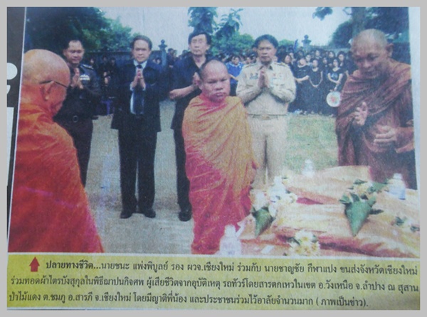 ..จากการสอบถาม ญาติ ผู้ที่รอดชีวิต (จากเหตุการณ์ รถทัวร์ นำเที่ยว ตกเหว เสียชีวิต รวม 23 คน) บน ถนน สาย อ.วังเหนือ - เวียงป่าเป้า กับขบวน คณะผ้าป่าสามัคคี ของหมู่บ้าน บ้านแม่สะลาบ และ บ้านใน.. ตำบลชมภู อ.สารภี ที่ผ่านมา ว่ามีใครบ้าง ที่รอดชีวิตมา หนึ่งในคน ที่รอดชีวิต นั้น คุณป้า..(คนหนึ่ง ไม่ประสงค์ออกนาม) ฃึ่งเป็น คุณแม่ของ นายกเทศบาล ตำบลชมภู และ หลายฯคนต่าง มีวัตถุมงคล คือ เหรียญ รุ่นแรก ของ หลวงปู่ครูบาบุญมา ..วัดแม่สะลาบ และ บางคน ก็ว่ามี เหรียญครูบาพรหมมา วัดพระบาทตากผ้า ไม่ทราบรุ่น..