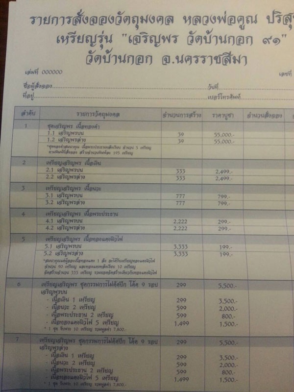 ประกาศรายการแบ่งจองให้เช่าบูชาครับ