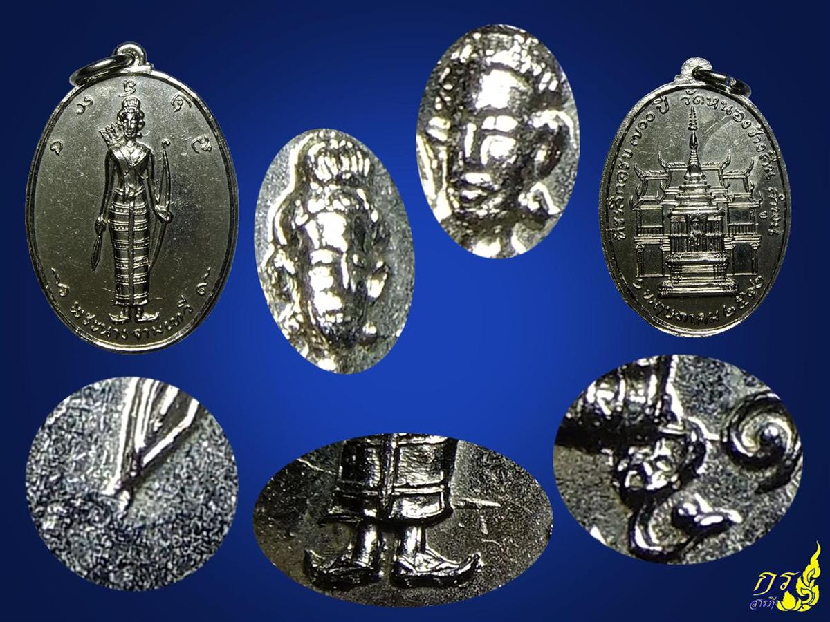 เหรียญ พระนางจามเทวี ปี2512 รุ่นแรก การสร้างเหรียญพระนางจามเทวีดังกล่าวเป็นความคิดริเริ่มของนายสง่า พงษ์ศิลป์ อดีตข้าราชการกรมทางรถไฟ ซึ่งขณะนั้นเป็นเขยบ้านหนองช้างคืน และโดยความเห็นชอบจากครูบาจันต๊ะ อนาวิโล ซึ่งขณะนั้นเป็นรองเจ้าอาวาสวัดหนองช้างคืน ซึ่งทานเป็นพระเกจิอาจารย์ที่มีลูกศิษย์ลูกหาอยู่ทั่วไปและมีชื่อเสียงโด่ง ดังทางด้านการทำตระกรุด แจกจ่ายให้ลูกศิษย์ไปใช้ มีประสบการณ์ทางด้านหนังเหนียวคงกระพันชาตรี แคล้วคลาดจากอาวุธ ของมีคม จนเป็นที่รู้จักกันเป็นอย่างดีของคนในพื้นที่ และแม้กระทั่งคนต่างถิ่นแดนไกล ที่ได้ตระกุดของท่านไปไว้บูชา การสร้างเหรียญรุ่นดังกล่าวโดยการดำเนินการของคุณสง่า พงษ์ศิลป์ เป็นผู้ติดต่อประสานงานดำเนินการโดยมีพรรคพวกเพื่อนฝูงที่กรมศิลปากร ขณะนั้นเป็นผู้ช่วยออกแบบ และครูบา จันต๊ะ อนาวิโล เป็นผู้ลงอักขระภาษาล้านนา ในบล็อกแม่พิมพ์ของเหรียญที่สร้าง โดยมีวัตถุประสงค์การสร้างเพื่อเป็นการเทิดพระเกียรติพระนางเจ้าจามเทวีปฐม กษัตริรีแห่งนครหริภุญชัย ในโอกาสสร้างวัดหนองช้างคืน ครบรอบ 700 ปี และเพื่อเป็นการหาเงินไว้ตั้งเป็นกองทุนมูลนิธิวัดหนองช้างคืน ลักษณะของเหรียญเป็นรูปวงกลมรีมีห่วงในตัว เนื้อทองเหลืองเคลือบผิวสีเงิน จำนวนเหรียญที่สร้างมีทั้งหมดจำนวน 3,000 เหรียญ
