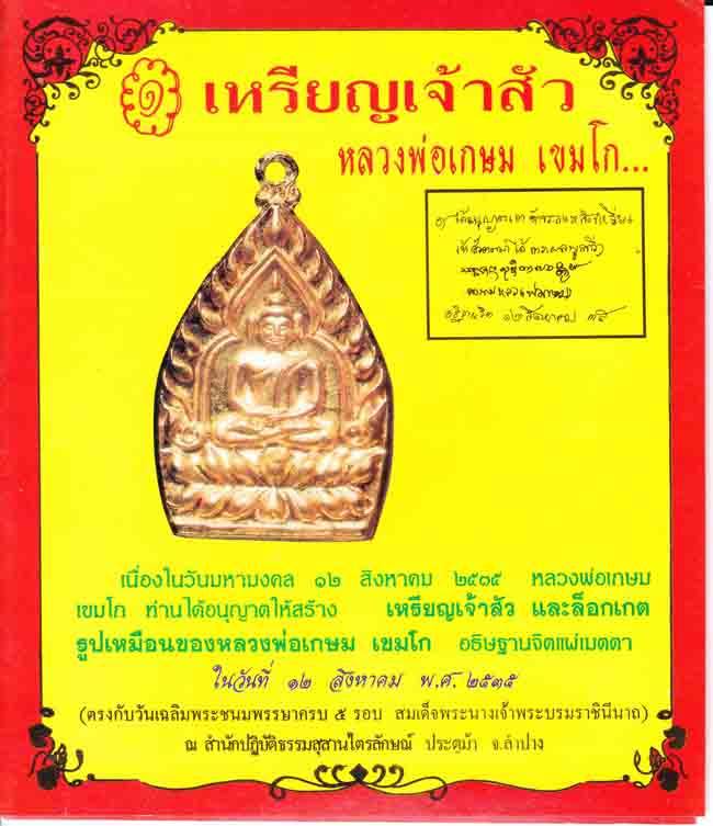 เหรียญเจ้าสัว หลวงพ่อเกษม พิมพ์ใหญ่ เนื้อเงิน ปี35 เลี่ยมทองพร้อมใช้ อยู่ในกล่องกรรมการเดิมๆครับ : พระล้านนา.คอม เว็บ พระเครื่อง พระบูชา อันดับหนึ่ง ของภาคเหนือ