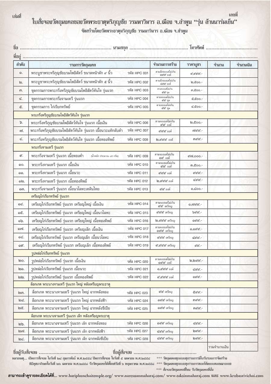 ขอเชิญร่วมเป็นเจ้าภาพสั่งจองวัตถุมงคลวัดพระธาตุหริภุญชัย วรมหาวิหาร "รุ่น ล้านนาร่มเย็น"