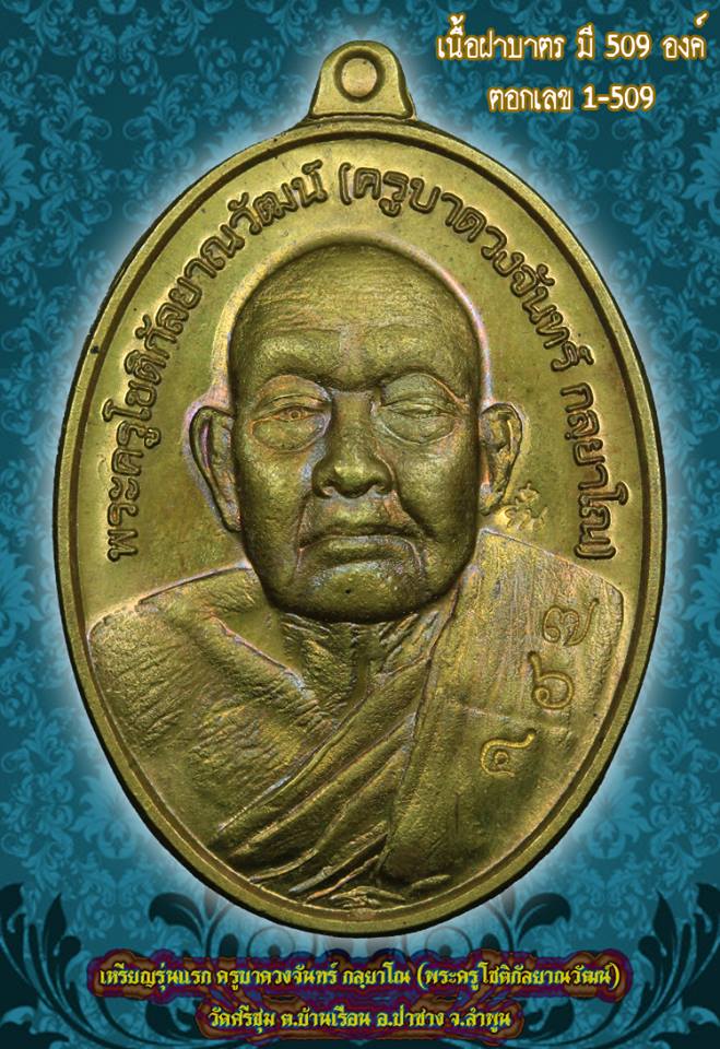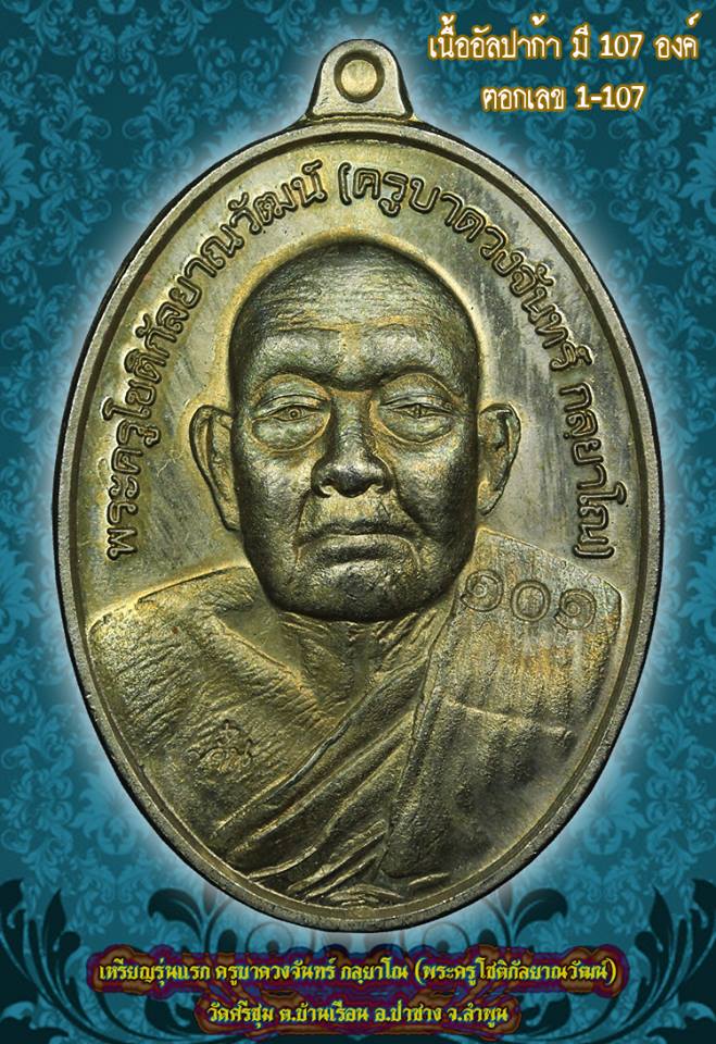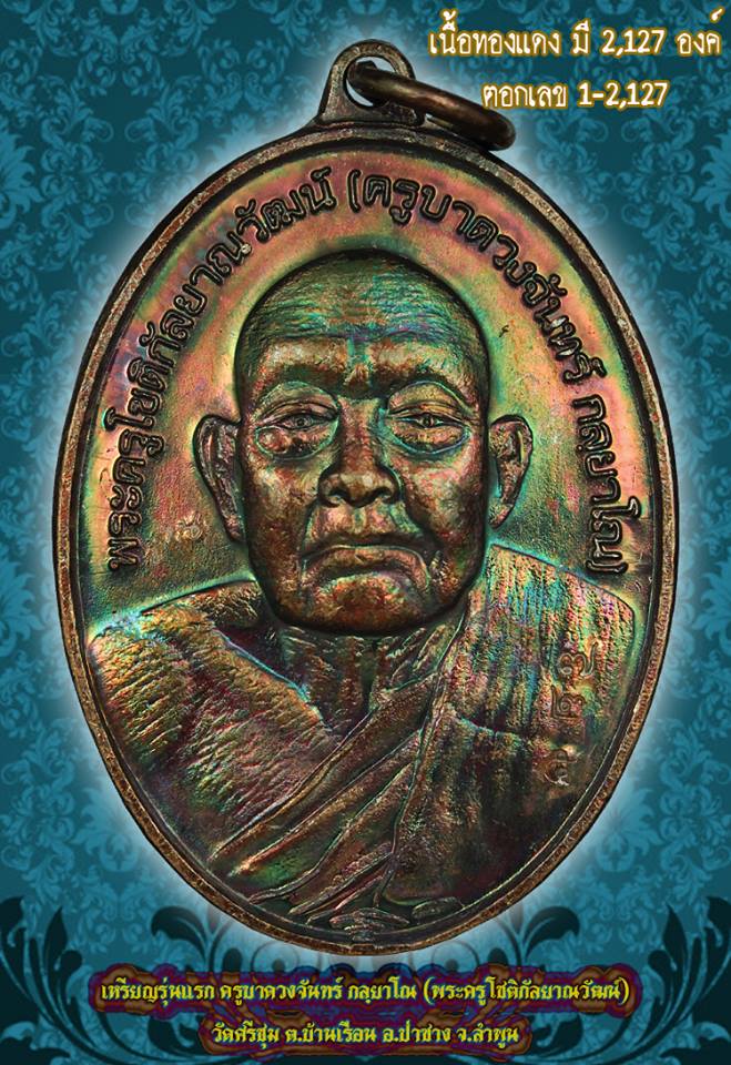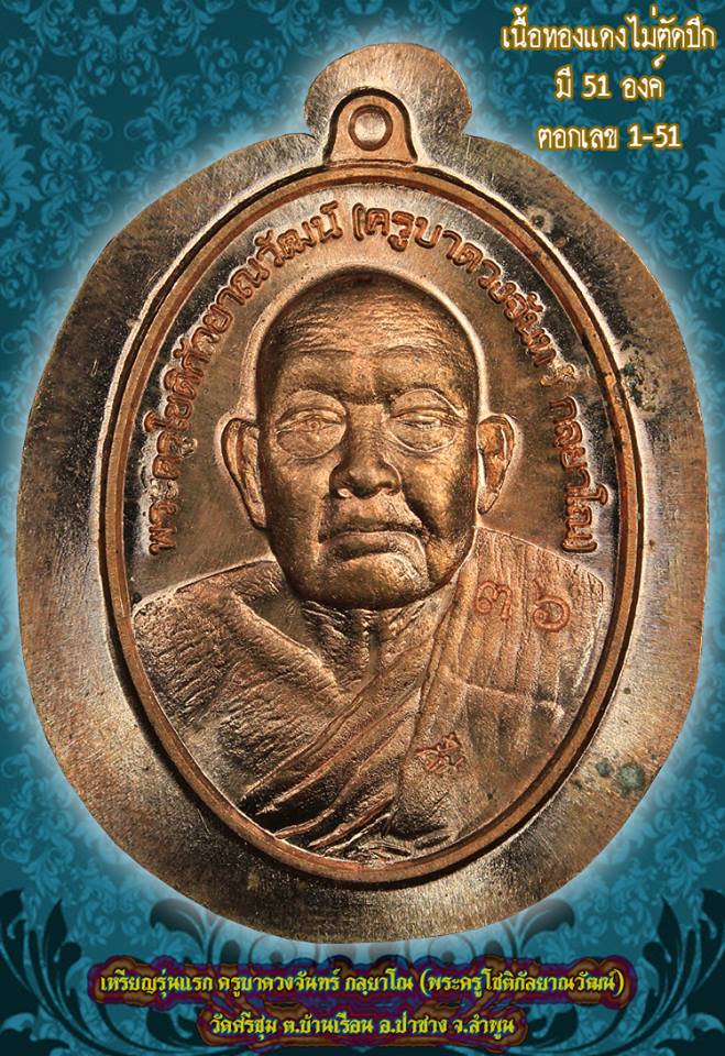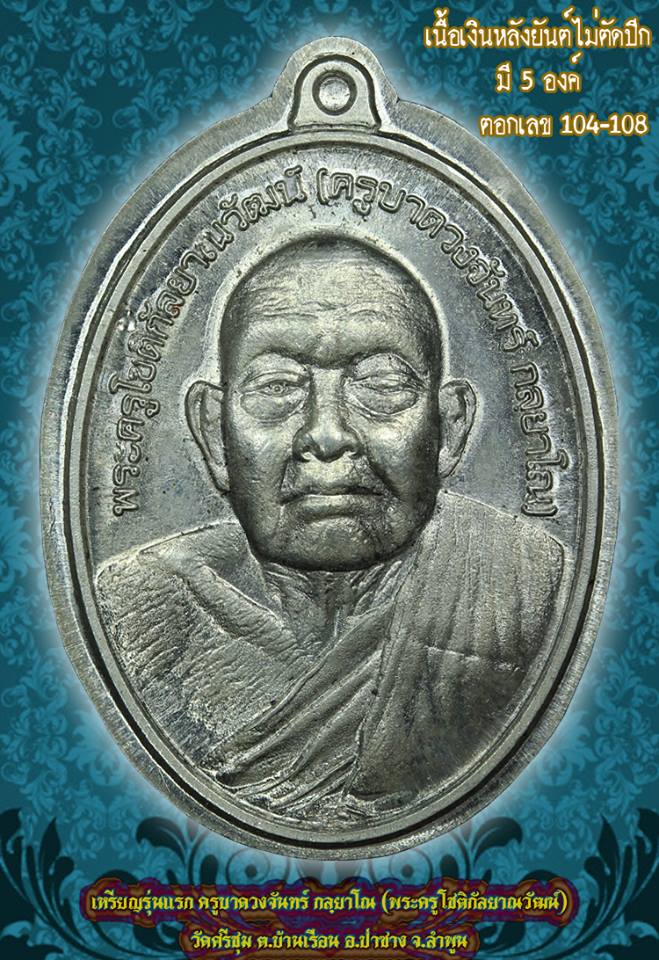 เหรียญรุ่นแรกครูบาดวงจันทร์ วัดศรีชุม ท่านเมตตาปลุกเสกให้ ใน คืนวันที่25 พฤศจิกายน 2558 เวลา 21.00น.ตรงกับวันลอยกระทงพอดี ซึ่งเป็นวันพระจันทร์เต็มดวง เหรียญรุ่นนี้เลยชื่อว่าเหรียญจันทร์เพ็ญ และในวันที่26 พฤศจิกายน 2558 ใช้เวลาไม่ถึง1วันเหรียญก็ได้หมดวัดเป็นที่เรียบร้อยเพราะแรงศัทธาของชาวบ้านไปร่วมทำบุญบูชาเหรียญจนหมดวัดเพียงแค่ครึ่งวันเท่านั้น