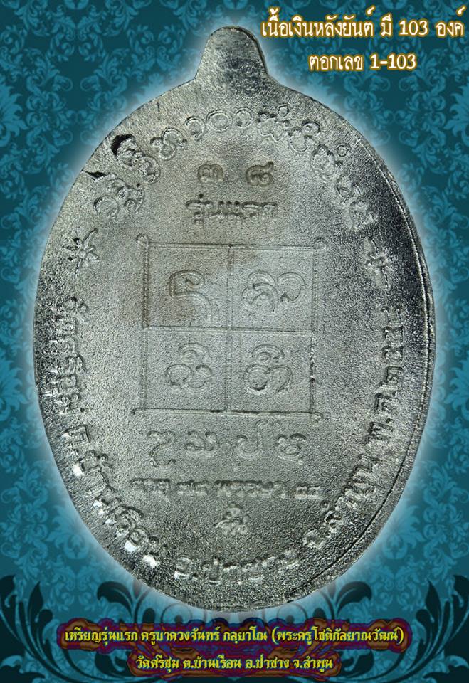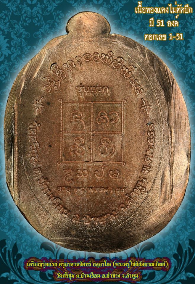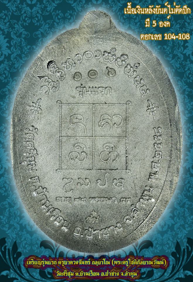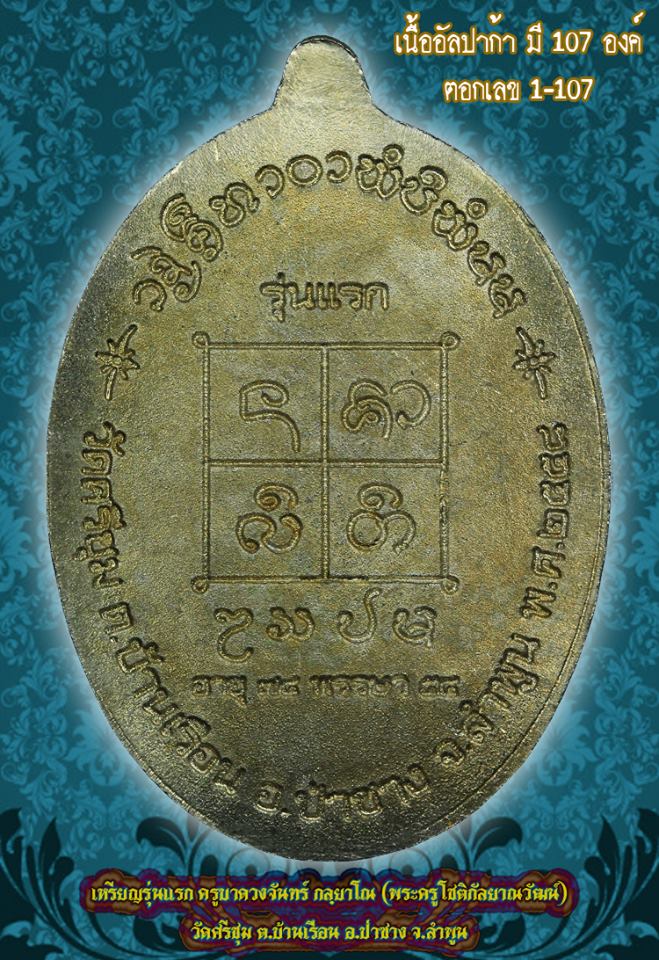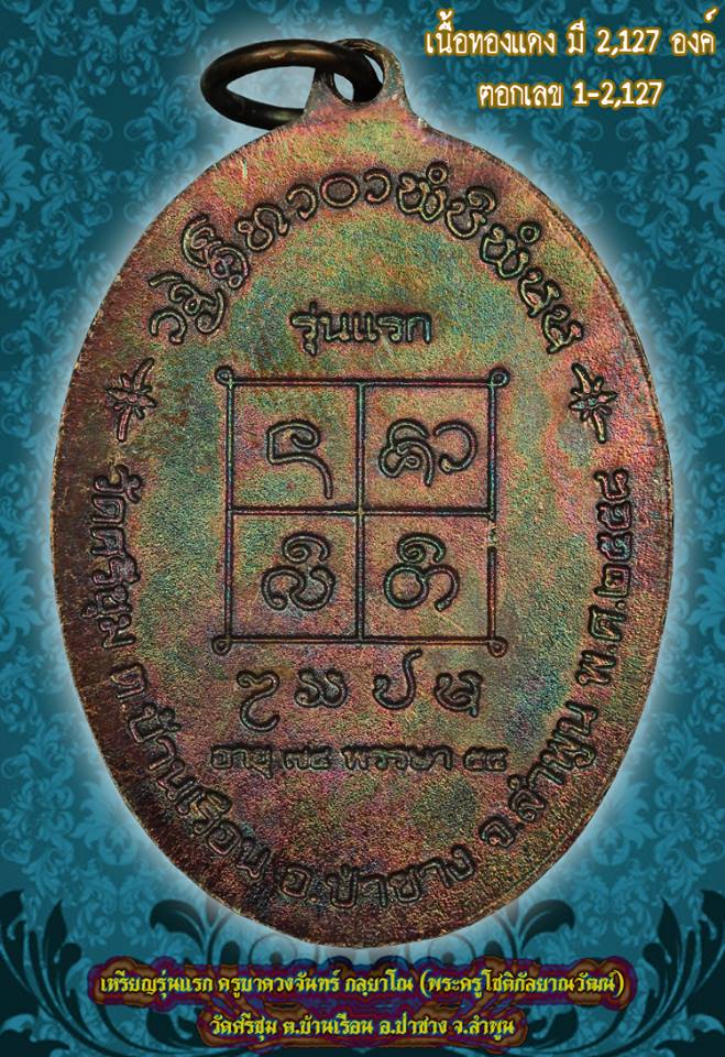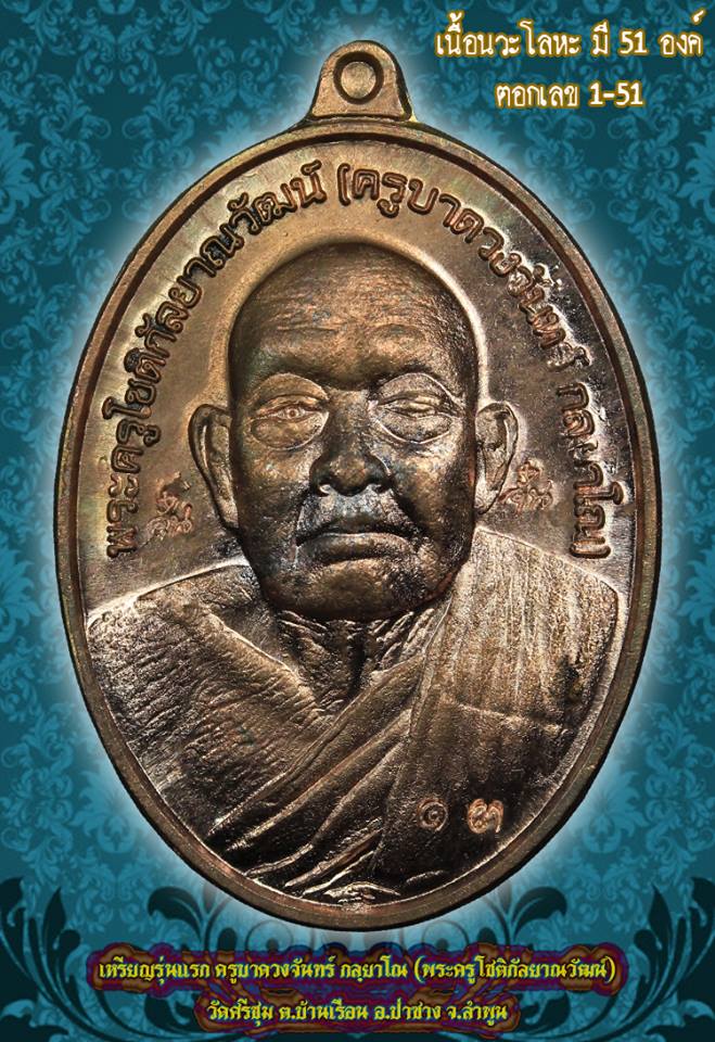 เหรียญรุ่นแรกครูบาดวงจันทร์ วัดศรีชุม ท่านเมตตาปลุกเสกให้ ใน คืนวันที่25 พฤศจิกายน 2558 เวลา 21.00น.ตรงกับวันลอยกระทงพอดี ซึ่งเป็นวันพระจันทร์เต็มดวง เหรียญรุ่นนี้เลยชื่อว่าเหรียญจันทร์เพ็ญ และในวันที่26 พฤศจิกายน 2558 ใช้เวลาไม่ถึง1วันเหรียญก็ได้หมดวัดเป็นที่เรียบร้อยเพราะแรงศัทธาของชาวบ้านไปร่วมทำบุญบูชาเหรียญจนหมดวัดเพียงแค่ครึ่งวันเท่านั้น
