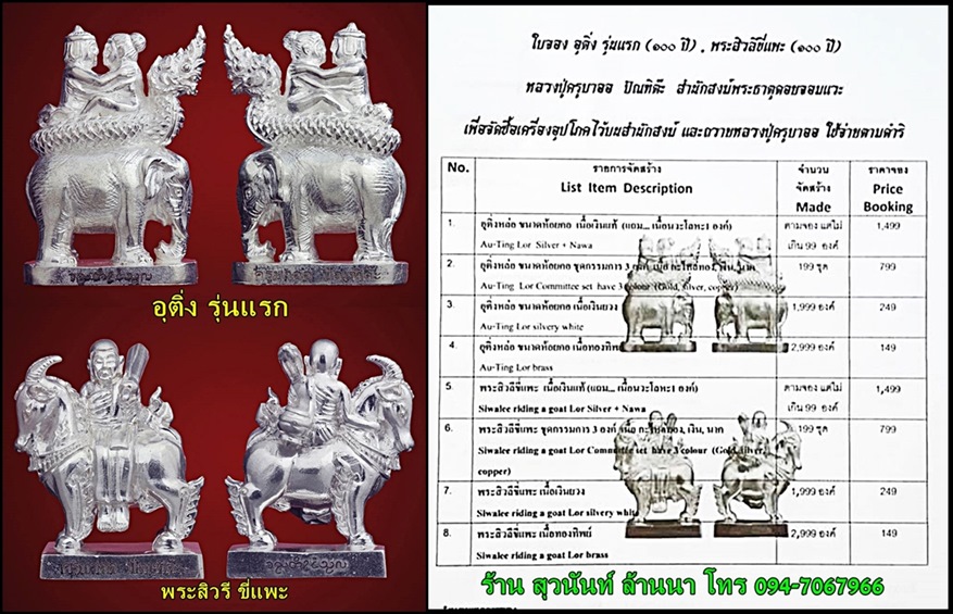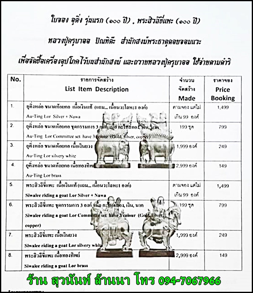 1.ชุดเนื้อเงินแท้ (แถมเนื้อนวะ1องค์) จำนวนสร้างตามสั่งจองไม่เกิน 99 ชุด ราคาจอง 1499 บาท
