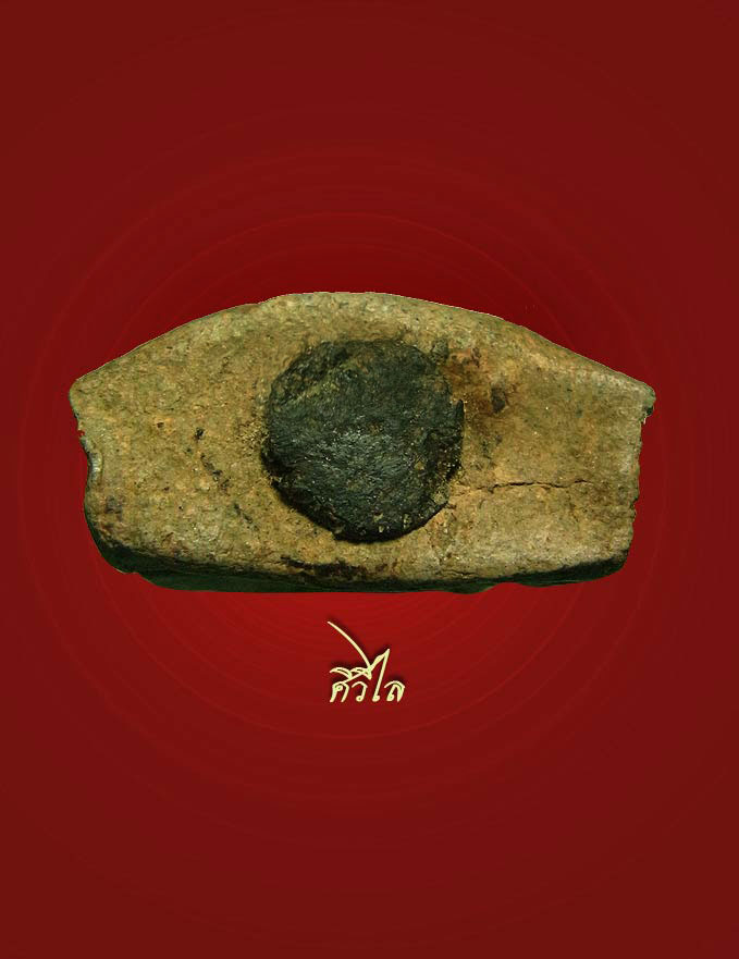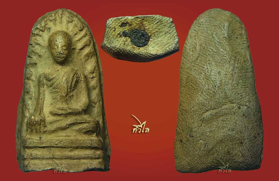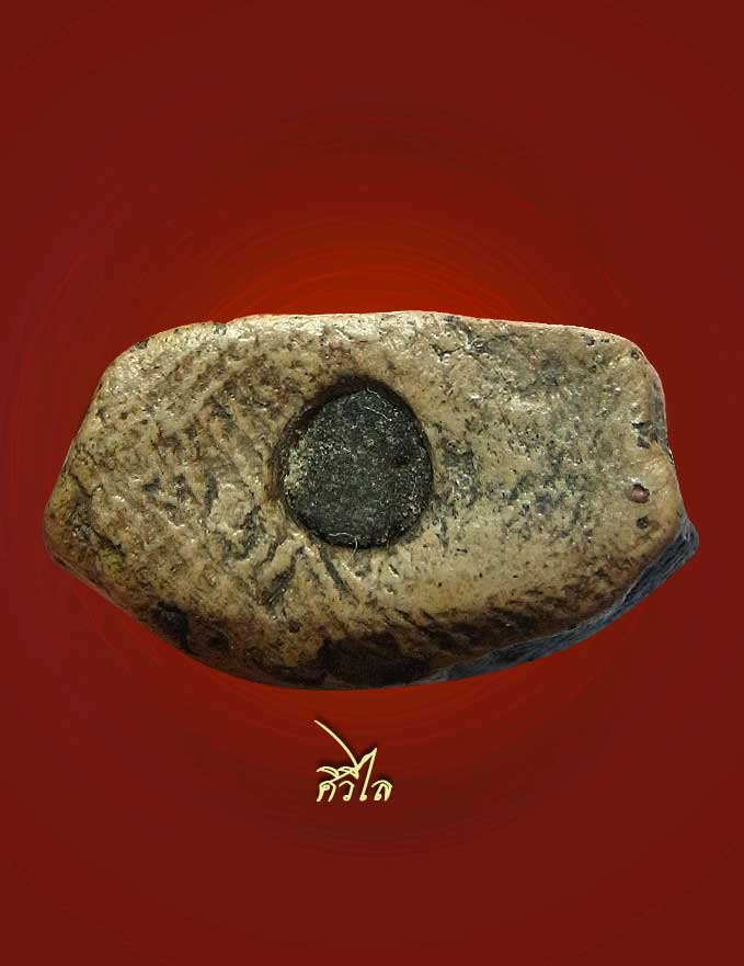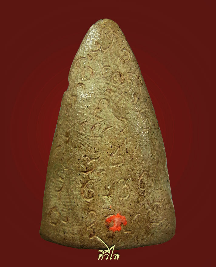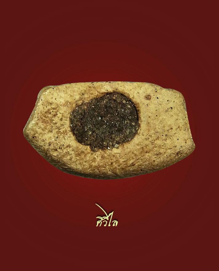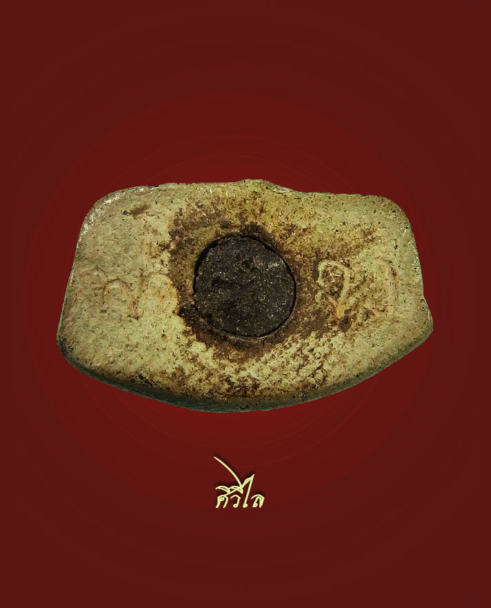พระอัฐิหลังย่น ครูบาศรีวิชัย ครูบาบุญทึม วัดจามเทวี ก้นอุดผงเกศา บางพิมพ์เขียนเป็นเป็นภาษาล้านนา ว่า เกศา