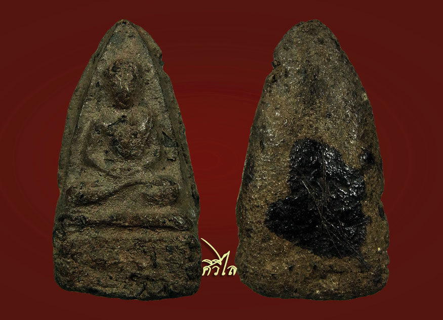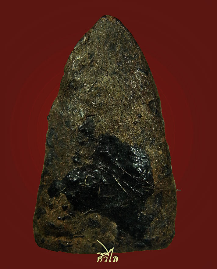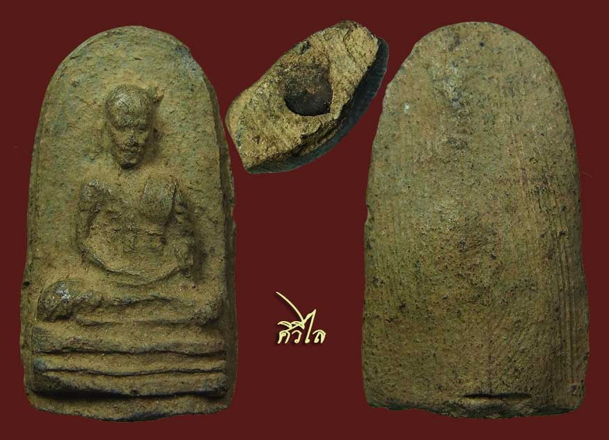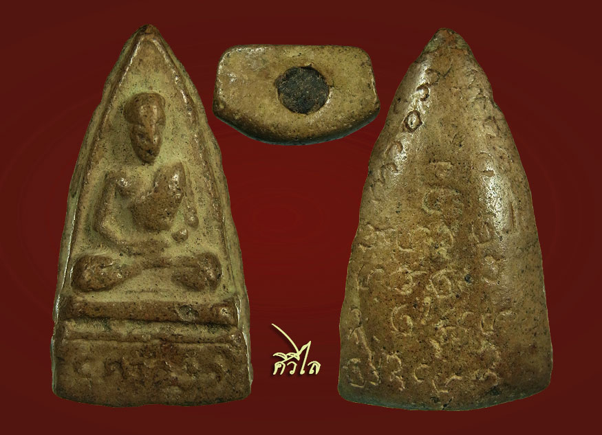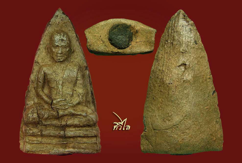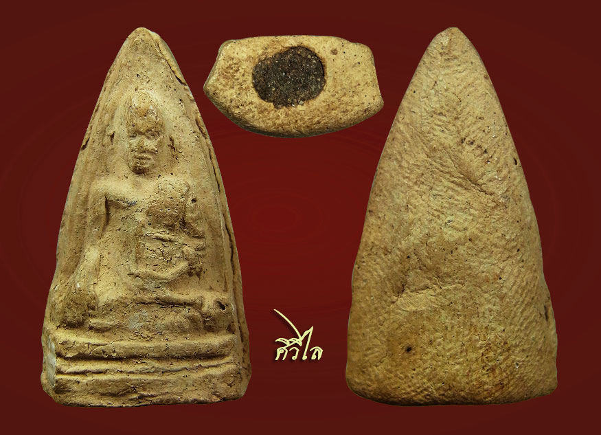 พระอัฐิหลังย่น ครูบาศรีวิชัย ครูบาบุญทึม วัดจามเทวี ก้นอุดผงเกศา บางพิมพ์เขียนเป็นเป็นภาษาล้านนา ว่า เกศา