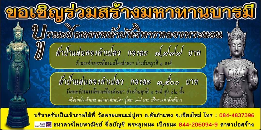 เปิดจองพระเจ้าจักรพรรดิ์ทรงเครื่องล้านนา สมทบทุนบูรณะปิดทองหน้าบันวิหารหลวงพระนอน วิหารครูบาเจ้าศรีวิไชยสร้าง ครบรอบ 88 ปี ขนาด12นิ้วและ18นิ้วครับ