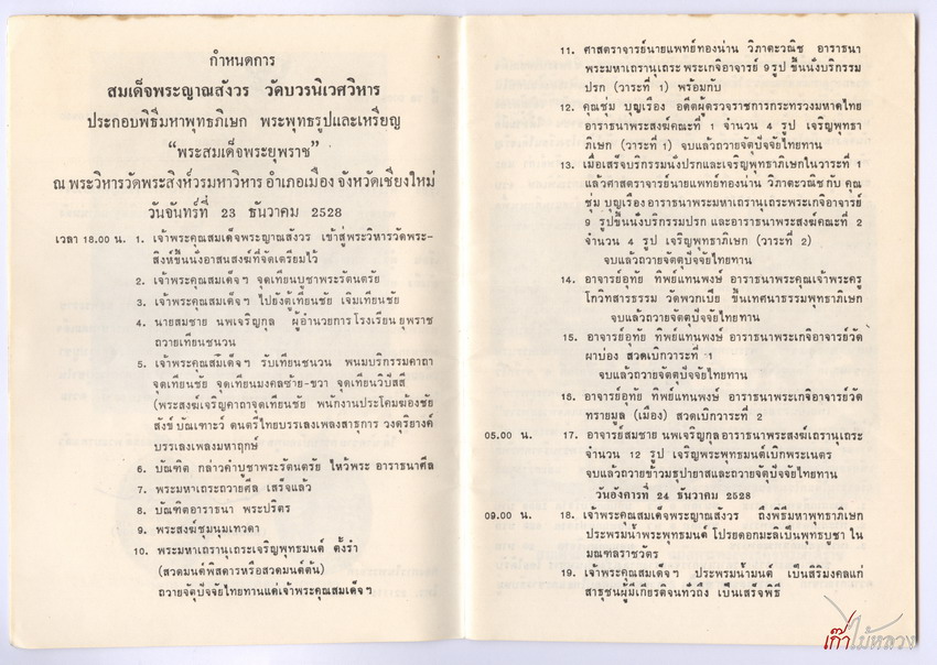 พระบูชาสมเด็จพระยุพราช พระประจำโรงเรียนยุพราชวิทยาลัย ด้วยพิธีพุทธาภิเศกที่ยิ่งใหญ่โดยมี สมเด็จฯพระญาญสังวรฯ สมเด็จพระสังฆราชทรงเป็นประธานในพิธีพุทธาภิเศก ณ. วิหารหลวงวัดพระสิงห์วรมหาวิหาร จ.เชียงใหม่ พร้อมด้วยพระคณาจารย์ล้านนา นำโดยครูบาเจ้าชัยวงศ์ วัดพระบาทห้วยต้ม ครูบาอิน วัดฟ้าหลั่ง ครูบาเจ้าดวงดี วัดท่าจำปี ครูบาสิงหวิชัย วัดฟ้าฮ่าม หลวงปู่ทอง วัดพระธาตุศรีจอมทอง ครูบาคำปัน วัดหม้อคำตวง และที่สำคัญได้นำไปขอบารมี หลวงพ่อเกษม เขมโก ลงแผ่นทองชนวนร่วมอธิษฐานจิต เมื่อวันที่ 23-24 ธันวาคม 2528 พระสวยเดิมๆ ครับ