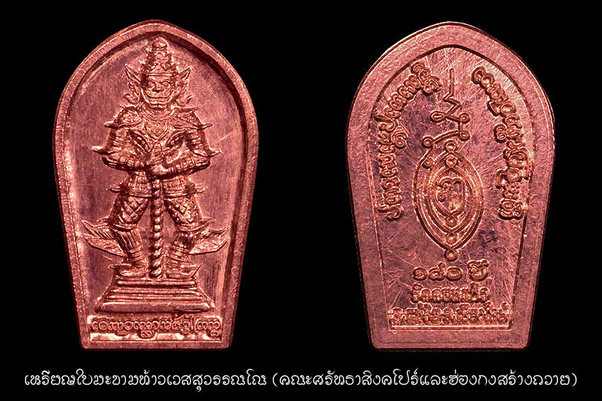 ๗.เหรียญใบมะขามท้าวเวสสุวรรณโณ(คณะศรัทธาสิงคโปร์และฮ่องกงสร้างถวาย)