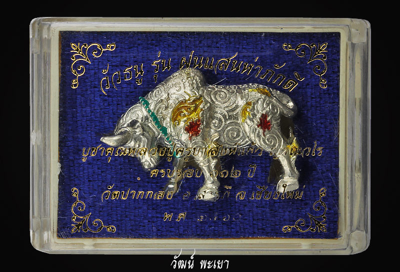 วัวธนูปู๊ฝนแสนห่าภักดี บูชาครูบาสิงห์แก้ว วัดปากกกอง ( เนื้อเงินลงยา 3 สี 1 ใน 12 ตัว ตัวนี้หมายเลข 11 )