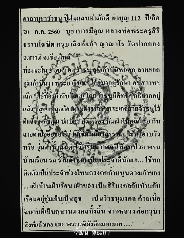 ทำบุญ 112 ปีเกิด 20 ก.ค. 2560 บูชาบารมีคุณ หลวงพ่อพระครูสิริธรรมโฆษิต ครูบาสิงห์แก้ว ญาณวโร วัดปากกอง อ.สารภี จ.เชียงใหม่