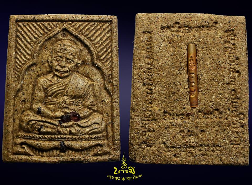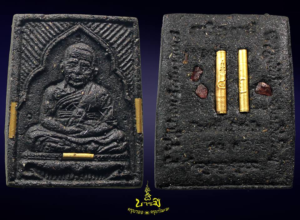 5.พระผงรูปเหมือนทนสิทธิ์ปิยะก่ายะ เนื้อก้นครก ตะกรุดสำริดแดง 5 ดอก สร้าง 89 องค์