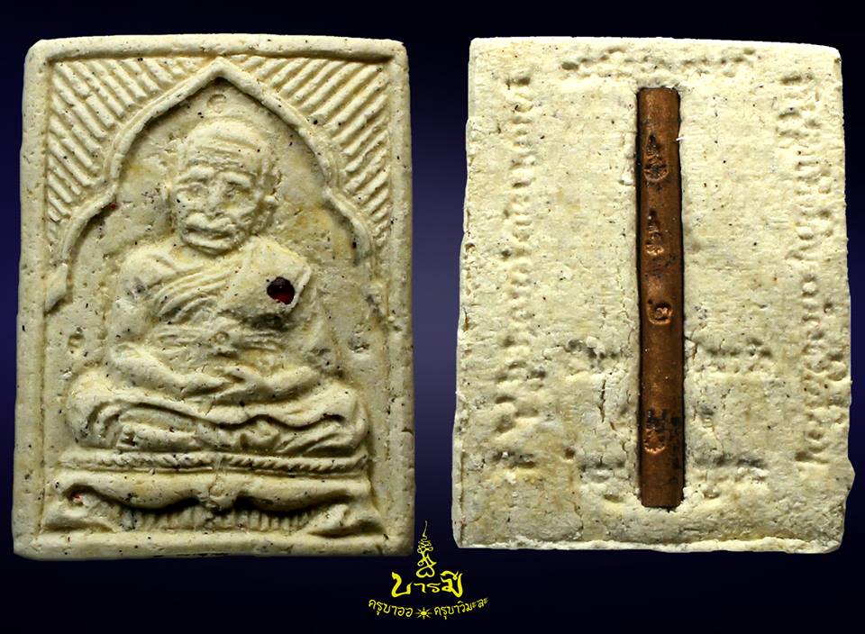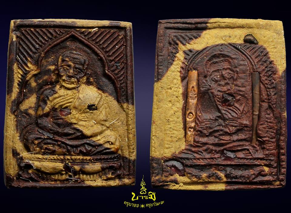 6.พระผงรูปเหมือนทนสิทธิ์ปิยะก่ายะ เนื้อสองสีหลังแบบ ตะกรุดสำริดแดง 2 ดอก สร้าง 89 องค์