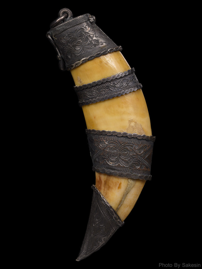 เขี้ยวเสือโปร่งฟ้าสวยขนาด 4 นิ้ว โดยประมาร เลียเงินโบราณพร้อมใช้เเล้วครับผม