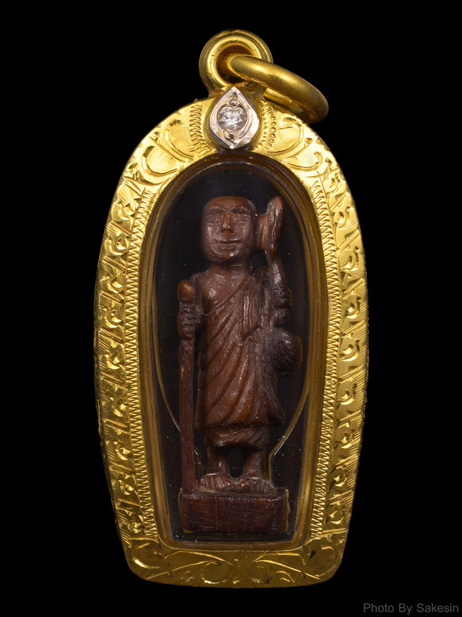 พระสีวลีเถระงาแกะแช่ว่านเลียมทอง ศิลปะไทใหญ่ล้านนา ขนาดความกว้าง 0.8 Cm ส่ง 2.2 Cm