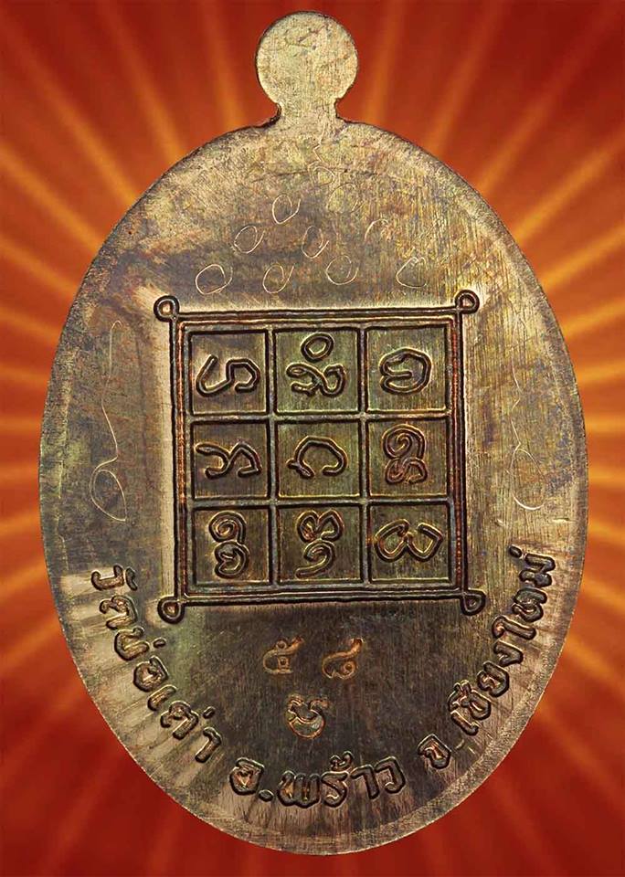 ครูบาศรีมรรย์ ยโสธโร วัดบ่อเต่า เหรียญรุ่นแรก เนื้อนวะหน้ากากทองคำ องค์นี้พิเศษมีจารย์ เหรียญประสบการณ์ จำนวนการสร้าง 59 เหรียญ นำเบิอ 58