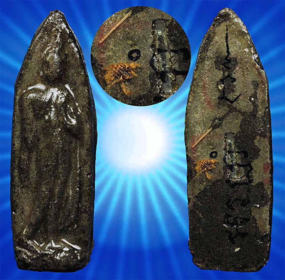 2.พระลีลารุ่นแรก องค์พิเศษ หนึ่งเดียวเนื้อสีดำเคื่อบ มีจารชัดเจน มีไม้จิมฟันเสก มีจีวรน มีตะกรุด แบบนี้นานๆเจิอสักองค์