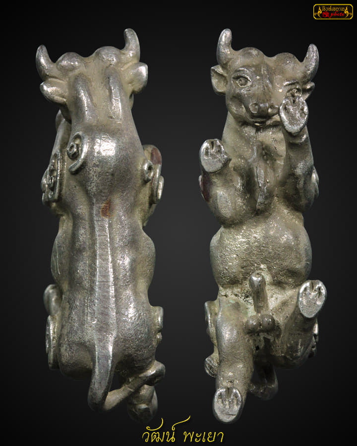 วัวธนูอาจารย์เณรวิเศษณ์ สิงห์คำ สร้างเมื่่อปี พ.ศ.๒๕๑๙ เนื้อเงิน ๑ ใน ๙๙ ตัว