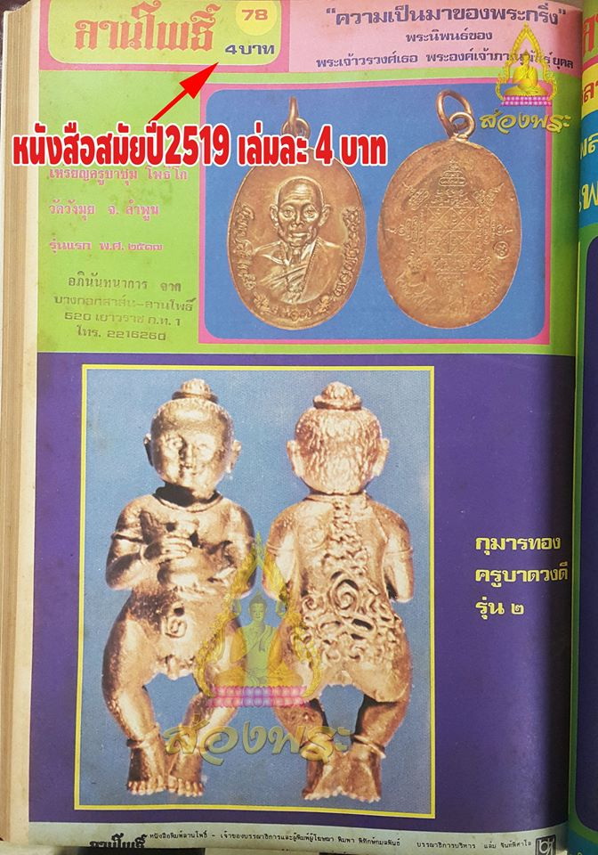 กุมารทองรุ่น2 หลวงปู่ครูบาดวงดี วัดท่าจำปี จ.เชียงใหม่ ปี 2518 กะไหล่ทอง ครูบาเจ้าดวงดี วัดท่าจำปี ศิษย์เอกครูบาเจ้าศรีวิไชย ตนบุญแห่งล้านนาไทย ท่านเป็นผู้สำเร็จวิชาการสร้างกุมารทอง ซึ่งเป็นต้นแบบกุมารทองล้านนา ไทยจัดสร้าง มานานกว่า 40 ปี กุมารทองเทพเป็นกุมารที่เกิดจากการตั้งธาตุ หนุนธาตุ และบรรจุมวลสารที่เป็นของมงคลล้วนๆ ไม่มีผงผีเจือปน อาจารย์ผู้ทำต้องมีจิตที่แข็งแกร่ง ต้องประสิทธิ์ประสาทอาคมให้ตัวกุมารทองมีพลังมากที่สุด ในนิมิตกุมารทองต้องดิ้นได้ นั่งบนกองเงินกองทอง เป็นต้น สำหรับกุมารประเภทนี้ ไม่มีอันตรายใดๆเพราะเป็นวิญาณสมมติขึ้นมา กุมารสายเทพเป็นฝ่ายขาว ท่านครูบาดวงดี ท่านได้อัญเชิญจิตวิญญาณบริสุทธิ์ของเทพจากสวรรค์ ชั้น จาตุมหาราชิกา ซึ่งเป็นภพภูมิใกล้มนุษย์ที่สุด เข้าประทับสถิต ในหุ่นกุมาร ฉะนั้นจึงมีแต่ให้ "คุณ" ไม่มีโทษแต่ประการใดทั้งสิ้น อาจารย์ที่ทำกุมารทองประเภทนี้ได้เก่งที่สุดคือ อาจารย์ฝ่ายพระเกจิที่มีพรรษามากๆ หรืออาจารย์ที่เป็นหมออาคมสายพุทธคุณครับ อาจเซ่นด้วยขนม น้ำหวานตามวาระโอกาส คาถาบูชา ลูกกุมารเทพฤทธิ์ นะโม ๓ จบ จิเจรุนิ จิตตัง เจตตะ สิกกัง รูปัง กุมาโรวา นิมิตตัง กุมารทอง อาคัจฉาหิ จิตติ เอหิ เอหิ นะมะพะทะ นะมะพะทะ นะมะพะทะ คาถาเรียกกุมาร นะโม ๓ จบ #อีก1ในตำนานของกุมารทองของแผ่นดินล้านนา ตัวจริงเสียงจริงสวยคมชัดลึก