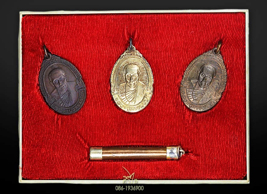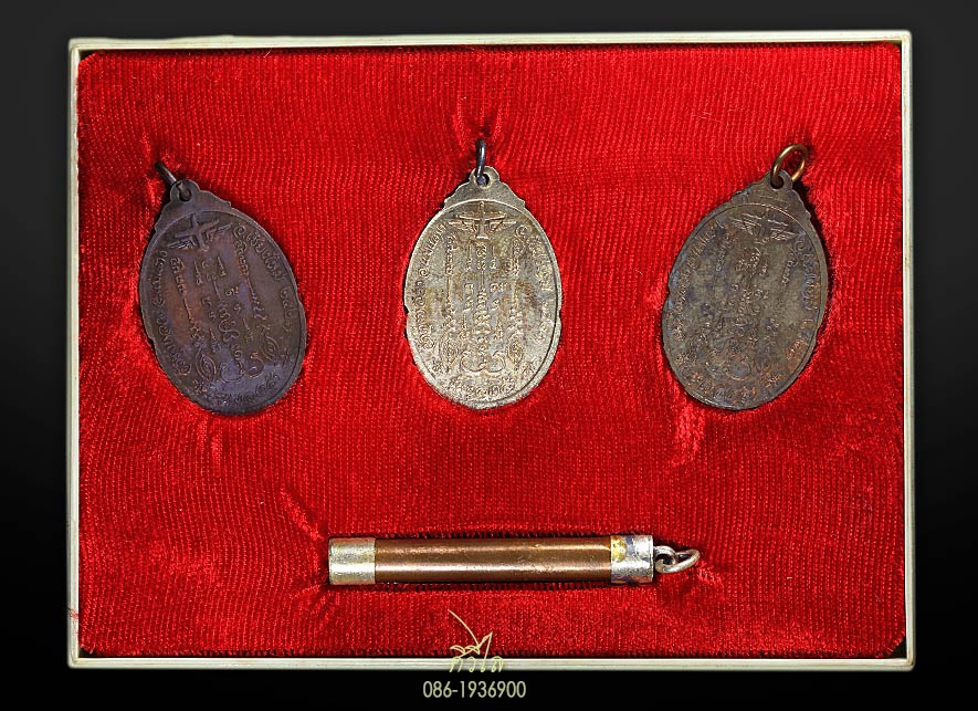 ชุดกรรมการเหรียญทูลเกล้าครูบาธรรมชัย วัดทุ่งหลวง ปี 18 เนื้อเงิน นวะ ทอง แดง ตะกรุดโทน สวยกล่องเดิม