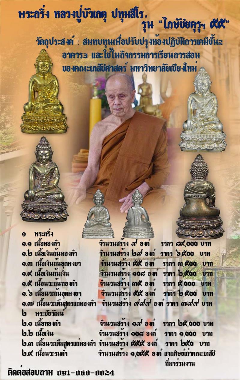 พระกริ่งหลวงปู่บัวเกตุ ปทุมสิโร วัดป่าปางกึีดกิตติธรรมคณะเภสัชศาสตร์ มหาวิทยาลัยเชียงใหม่ และศิษย์เก่าฯ ได้จัดสร้างพระกริ่งไภษัชยคุรุฯ ๕๕ ขึ้น โนโอกาสที่คณะฯครบรอบ ๕๕ ปี ใน พ.ศ. ๒๕๖๒ โดยได้รับความเมตตาจากหลวงปู่บัวเกตุ ปทุมสิโร วัดป่าปางกึ๊ดกิตติธรรม อ.แม่แตง จ.เชียงใหม่ อธิษฐานจิตให้