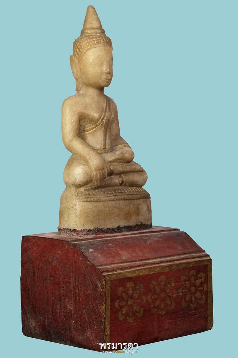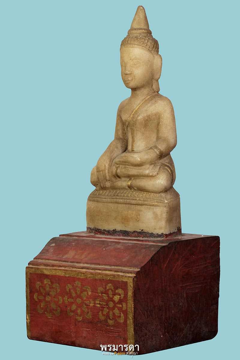 พระเจ้าหินแกะล้านนา อายุ ๑๓๒ ปี หน้าตักสี่นิ้ว องค์พระสูงแปดนิ้วครึ่ง ฐานไม้ลงชาดลงทองลายดอกกว้างห้านิ้วครึ่ง สูงรวมองค์พระสิบสองนิ้ว ตามจารึกด้านหลังระบุว่าสร้างถวายโดยศรัทธานาย.หน่าย สุนันต๊ะ สร้างปี๋จุลศักราช ๑๒๕๐ เทียบแล้วอายุของพระองค์นี้ ๑๓๒ ปี สวยงามด้วยพุทธศิลป