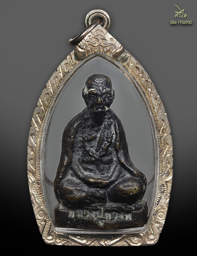 รูปหล่อโบราณรุ่นแรกครูบาดวงดีวัดท่าจำปี ปี 2507 ก้นอุดผงเดิมๆ เลี่ยมเงินพร้อมใช้