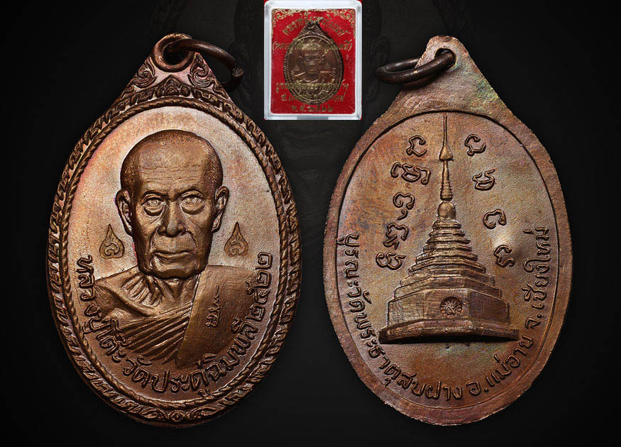 เหรียญหลวงปู่โต๊ะหลังพระธาตุสบฝาง ปี 2522 เนื้อทองแดง ตอกโค๊ต 3 โค๊ต สร้างน้อยมาก หายากสุดๆ สวยแชมป์ บรรยายด้วยภาพ มาพร้อมกล่องเดิม