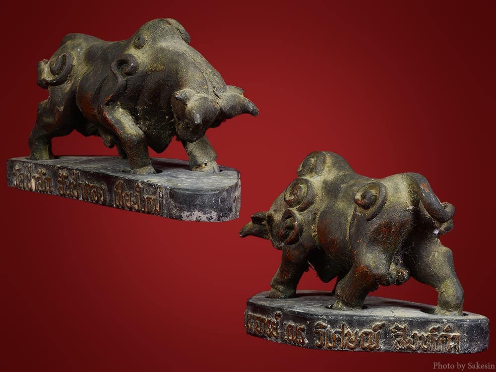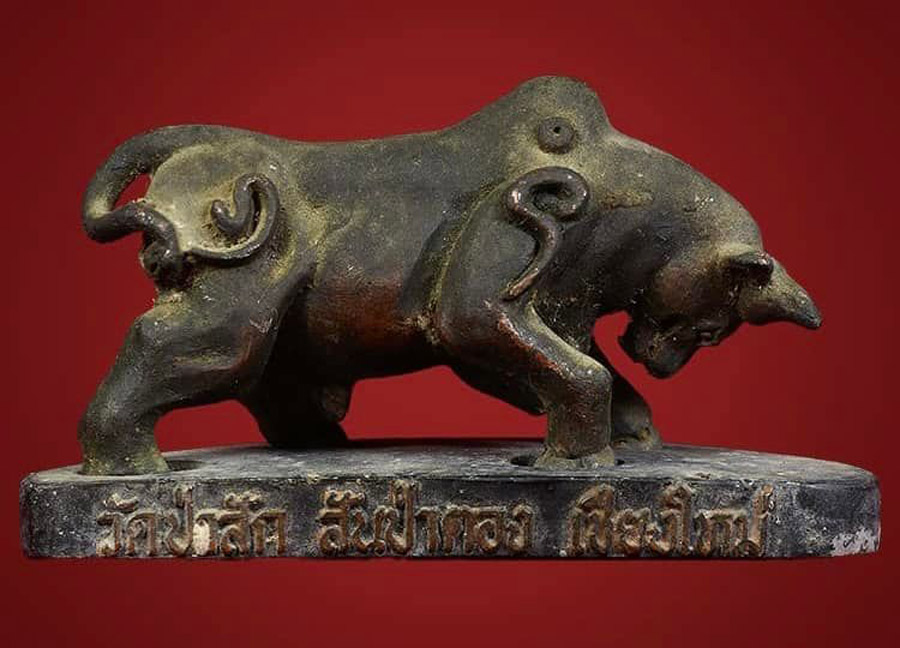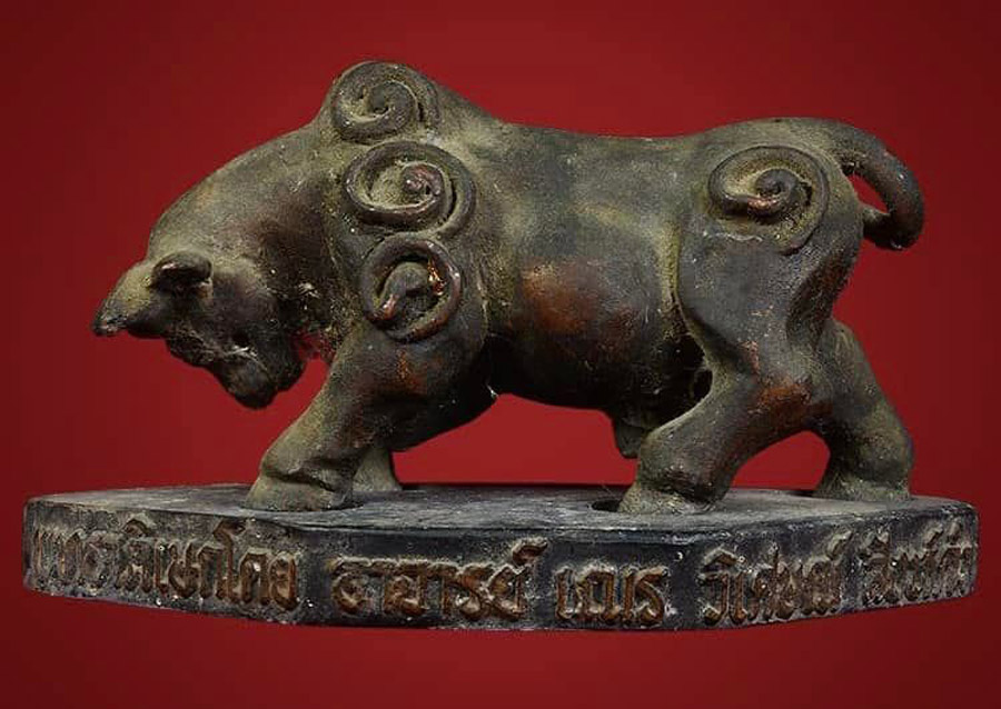 วัวธนูอาจารย์เณร วิเศษสิงห์คำ ปี2519 ขนาดบูชา ยากที่จะหา สภาพสวยผิวหิ้งๆ เข้มขลัง ตำหรับวัวธนูวิ่งชนในบาตร พิธีเข้มขลัง ปลุกเสกกลางป่าช้า วัวธนูอาจารย์เณรวิเศษณ์ สิงห์คำ สร้างเมื่อ ปี 2519 วัตถุมงคลที่ว่านี้ไม่เป็นสองรองใครโดยประวัติการเล่าต่อๆกันมาว่าจนถึงปัจจุบัน ท่านอาจารย์เณรได้ปลุกเสกวัวธนูนี้ในป่าช้าบ้านป่าสัก2วาระ ปลุกเสกวัดร้างบนเขา เขตจอมทอง1วาระ เมื่อขณะที่ท่านกำลังปลุกเสกวาระที่กลางป่าช้าชาวบ้านต่างได้มีเสียงวัววิ่งรอบป่าช้า และวัวธนูเนื้อทองแดงวิ่งชนกันในบาตรพระที่ท่านใช้ปลุกเสกนั่งปรก โดยท่านปลุกเสือในตัวสู้กับวัวธนูที่วิ่งในบาตร จนวัวธนูเนื้อทองแดงตัวหนึ่งกระเด็นออกมาจากบาตร(และมีเสียงวัวธนูตัวนั้นวิ่งรอบบริเวณป่าช้า จนเป็นที่ล่ำลือจนถึงทุกวันนี้ วัตถุมงคลที่ว่านี้ไม่เป็นสองรองใครโดยประวัติการเล่าต่อๆกันมาว่าจนถึงปัจจุบัน ท่านอาจารย์เณรได้ปลุกเสกวัวธนูนี้ในป่าช้าบ้านป่าสัก2วาระ ปลุกเสกวัดร้างบนเขา เขตจอมทอง1วาระ เมื่อขณะที่ท่านกำลังปลุกเสกวาระที่กลางป่าช้าชาวบ้านต่างได้มีเสียงวัววิ่งรอบป่าช้า และวัวธนูเนื้อทองแดงวิ่งชนกันในบาตรพระที่ท่านใช้ปลุกเสกนั่งปรก โดยท่านปลุกเสือในตัวสู้กับวัวธนูที่วิ่งในบาตร จนวัวธนูเนื้อทองแดงตัวหนึ่งกระเด็นออกมาจากบาตรและมีเสียงวัวธนูตัวนั้นวิ่งรอบบริเวณป่าช้า จนเป็นที่ล่ำลือจนถึงทุกวันนี้ครับผม คาถาปลุก วัวธนู โอมโคโน มหาโคโน โอมเสโส มหาเสโส โอมสะตะสะตา ผลายันตุ โอมปลุก โอมปลุก กูจักปลุกวัวธนูกูหื้อมีกำลังเหมือนดังช้างสาร ป่าใหญ่ หื้อมีเตชะ อำนาจใหญ่เหมือนดัง ราชสีห์ล่าเนื้อ กูจักไจ้หื้อจนก่จน กูจักไจ้หื้อแตงก่แตง แม้นว่ากำแปง ปันแสนก่ปอพังทะลายได้ โอมสวาหะเท็ก ติดต่อสอบถาม เเอดไอดี LINE jack0810312139 WeChat ID 微信 jackchianbgdao โทรศัพท์ 081-0312139