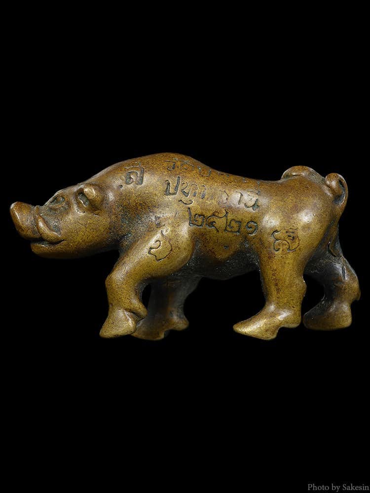 #หมูมหาลาภหลวงปู่เส็ง วัดบางนา ปทุมธานี ปี2521 การสร้างหมู ของหลวงปู่ในครั้งนี้นั้น ท่านจะอธิษฐานจิตให้เป็นไปในทางเมตตามหานิยม ในทางค้าขายและในทางโชคลาภ เพราะฉนั้นจึงดีเด่นในทางค้าขาย ซื้อง่ายขายคล่องทำอะไรก็จะดีเป็นของหมูๆ ฉนั้นทุกครั้งที่จะใช้ในการเดินทางหรือนำติดตัวไปค้าขาย หรือตั้งบูชาไว้ที่บ้านจะต้องอาราธนานึกถึงบารมีของหลวงปู่เส็ง และกล่าวคำอาราธนาคาถา “หัวใจหมู” เพื่อปลุกให้หมูออกฤทธิ์และอำนาจตามที่คนศรัทรานำไปใช้ คาถาบูชา นะโมฯ ๓จบ อิ สะ วา สุ สุ สะ วา อิ นะมะพะทะ จะ ภะ กะ สะ นะโมพุทธายะ นะชาลีติ จันทะรังสี เอ สะ มะ สุ อิทธิฤทธิ ภะวันตุเม ใช้ไปในทางติดต่อเจรจา ค้าขาย เป็นโชคลาภ และในขณะที่ท่านนำหมูติดตัวไปด้วย ก่อนออกจากบ้านหรือเดินทาง จะต้องอาราธนาว่าคาถาหัวใจหมูก่อน เมื่อนำติดตัวไปด้วยนั้นหากจะกินข้าวหรือน้ำหรือสิ่งใด ให้เรียกหรืออธิษฐานในใจว่า “พระยาหมูทองแดง กินข้าวกินน้ำด้วยกันนะ” หมูก็จะได้กินไปกับผู้ใช้ด้วย และถ้าตั้งบูชาที่บ้านก็ให้ตั้งต่ำกว่าพระพุทธมีข้าวแดงผสมใส่ในถ้วยและน้ำ เรียกให้กินด้วยการสวดหัวใจหมูเป็นต้น #สนใจ เเอดไอดีLINE jack0810312139 กดลิงค์ @ LINE httpsline.metipfU7poCiTmI WeChat ID 微信 jackchianbgdao #โทรศัพท์ 081-0312139