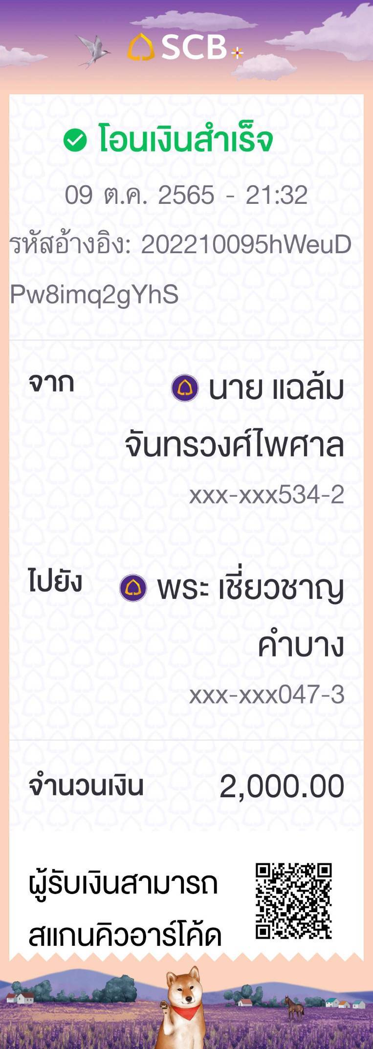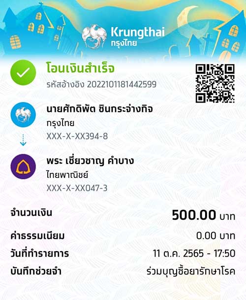 โอนเงินไปที่ บัญชี .พระเชี่ยวชาญ คำบาง