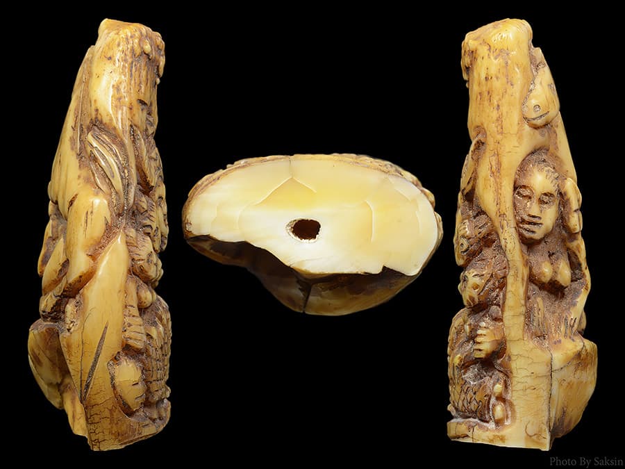 พญาเขาคำผู้มากเมีย ม้าเสพนางมหาเสน่ห์ 2IN1 เนื้อเขี้ยวติดมะระ แกะเก่า ขนาดกว้าง 0.8 นิ้ว สูง 1.3 นิ้ว มาพร้อมบัตร สมาคม ยากที่จะหา เก่าๆมันๆ มีตำนานมาจากไทใหญ่หรือเงี้ยวกลุ่มชาติพันธุ์ที่มีพื้นฐานดั้งเดิมที่รัฐฉาน ประเทศพม่า เมื่อวัฒนธรรมไทยใหญ่ได้มีอิทธิพลแพร่เข้ามาสู่หัวเมืองทางเหนือ ก็ได้นำเอาความเชื่อ ตลอดจนสรรพวิทยาทางด้านเวทย์มนต์ต่างๆเข้ามาด้วย ดังปรากฏในตำราหรือคัมภีย์โบราณของล้านนา ที่เรียกว่าปั๊บสาก็มีบันทึกถึงวิชาเหล่านี้ด้วย ตามตำนานว่า พญาเขาคำเป็นผู้มีทรัพย์มาก และเป็นคหบดีผู้มีเสน่ห์ ทำให้มีสตรีแวดล้อมอยู่ไม่ขาด อันเนื่องด้วยฐานะและรูปโฉมที่งดงาม ไสยศาสตร์ล้านนาจึงได้นำเอาคุณของพญาเขาคำมาทำเป็นวิชาทางด้านไสยเวทย์ (คล้ายกับขุนแผนของทางภาคกลาง) และจะสร้างเป็นวัตถุมงคลหรือของขลังประเภทต่างๆเช่น ผ้ายันต์ หรือ ลอยองค์ เป็นต้น อนุภาพเมตตามหานิยม เสน่ห์ ความรัก การเงิน #สนใจ เเอดไอดีLINE jack0810312139 กดลิงค์ @ LINE httpsline.metipfU7poCiTmI WeChat ID 微信 jackchianbgdao #โทรศัพท์ 081-0312139