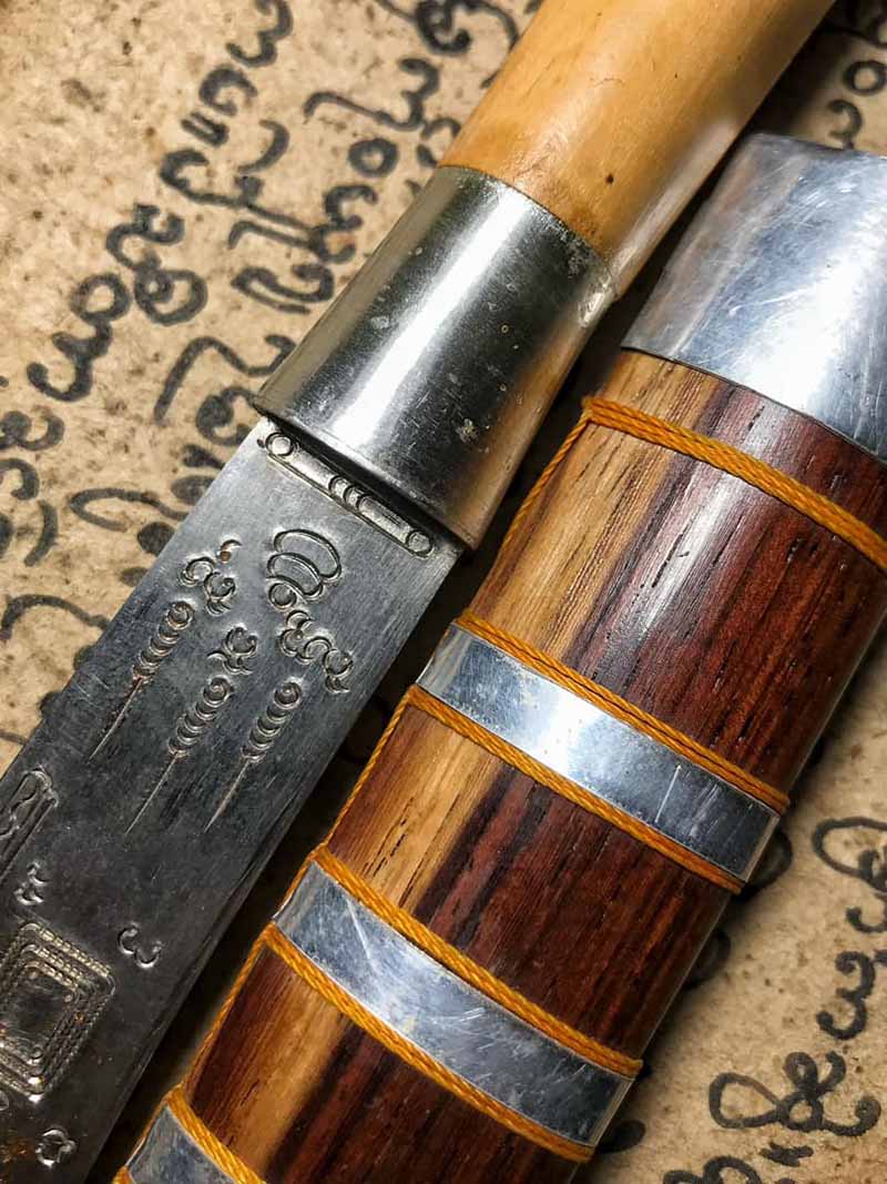 มีดหมอหลวงพ่อบุญมี วัดเขาสมอคอน อ.ท่าวุ้ง จ.ลพบุรี ขนาด 9 นิ้ว สภาพสวยสมบูรณ์สุดสุด หลวงพ่อบุญมี จัดสร้างวัตถุมงคลแทบทุกชนิด ล้วนมีประสบการณ์มาแล้วทั้งสิ้น จึงเป็นที่หวงแหนของลูกศิษย์โดยทั่วไป สำหรับวัตถุมงคลที่หลวงพ่อสร้างในยุคแรกๆ คือมีดหมอหลวงพ่อบุญมี วัดเขาสมอคอน ที่ท่านได้เรียนมาจาก หลวงพ่อพระอุปัชฌาย์ก๋ง ซึ่งเป็นวิชามีดหมอคนละสายกับของ หลวงพ่อเดิม วัดหนองโพ หลวงพ่อบุญมี ได้สร้าง มีดหมอ มาตั้งแต่ พ.ศ. ๒๔๘๐ สาเหตุที่ได้สร้างมีดหมอก็เพราะว่าชาวบ้านถูกผีเข้าบ่อยๆ เมื่อญาติพาตัวมาหาหลวงพ่อ ท่านก็รักษาด้วยการรดน้ำมนต์ จนหายขาดกลับบ้านไปทุกคน ต่อมาท่านจึงได้ทำ มีดหมอ ขึ้นมาเพื่อแจกชาวบ้านไว้ใช้ป้องกันภูตผีปีศาจ และป้องกันสัตว์ร้ายต่างๆ ปรากฏว่าชาวบ้านนำไปใช้ได้ผลดีมาก จนเป็นที่รู้จักแพร่หลายออกไปอย่างกว้างขวาง สนใจ เเอดไอดีLINE jack0810312139 กดลิงค์ @ LINE httpsline.metipfU7poCiTmI WeChat ID 微信 jackchianbgdao #โทรศัพท์ 081-0312139