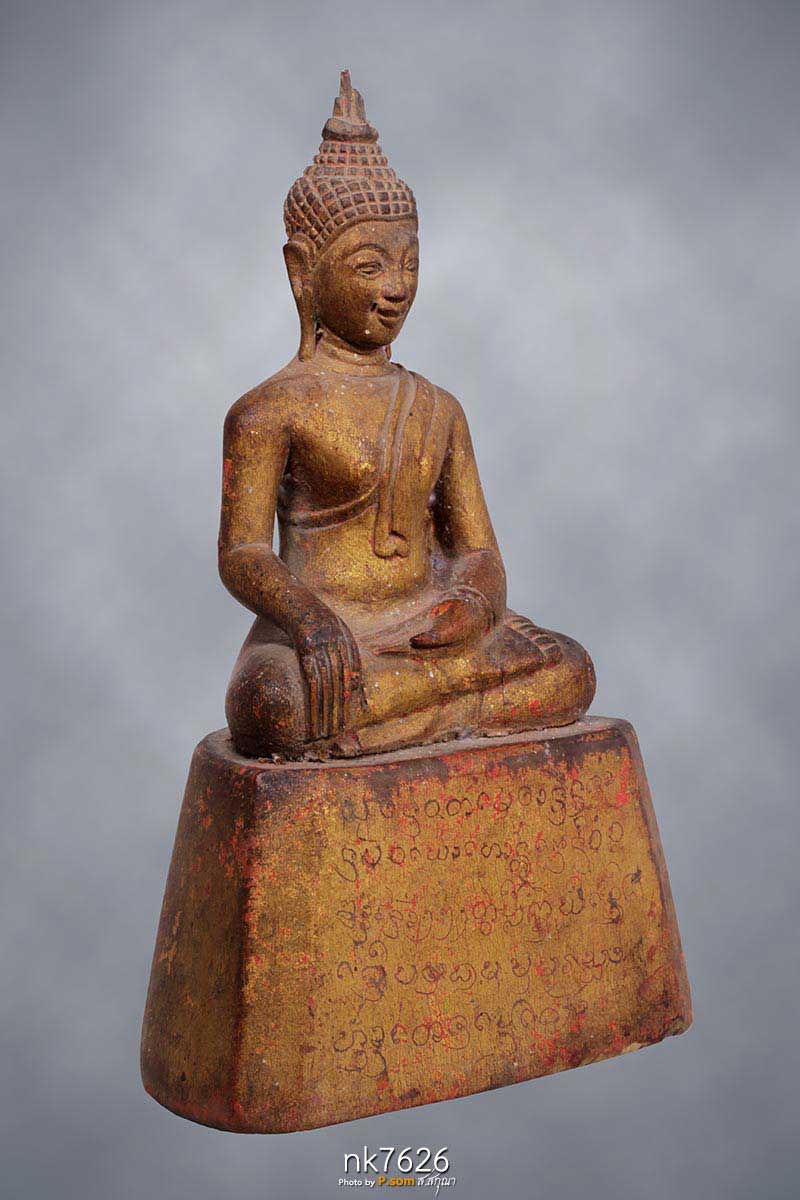 พระเจ้าไม้ล้านนาฐานจารึก สิงห์3 หนัาตัก2.9นิ้ว สูง6.5นิ้ว อายุประมาณ100ปี