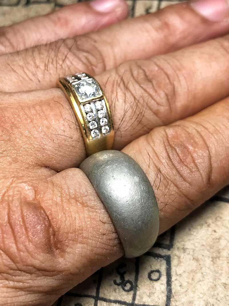 แหวนปลอกมีดหลวงปู่ดู่ วัดสะแก เนื้อเงิน ปี2532 สภาพใช้ มีโค๊ด มีเนื้อโลหะผสมและเนื้อเงิน ขนาดเส้นผ่าศูนย์กลาง 2 ซม. คนโบราณท่านให้ใส่แหวนไว้นิ้วชี้มือข้างที่ถนัด เพื่อให้เกิดอำนาจ บารมี จะได้เป็นเจ้าคนนายคนครับ(โบราณท่านว่านะครับ) วิธีสวมแหวน ลป.ดู่ ตั้งนะโม3 จบแล้วกล่าวคำว่า พุทธังอาธนังกะโรมิ ธัมมังอาราธนังกะโรมิ สังฆังอาราธนังกะโรมิ เวลาสวมแหวนให้สวมหมุนขวา (ของตัวเรา) แล้วท่องคำว่า หมุนครั้งที่1พุทธังสะระนังคัจฉามิ หมุนครั้งที่2ธัมมังสะระนัง คัจฉามิ หมุนครั้งที่3สังฆังสะระนังคัจฉามิ สนใจ เเอดไอดีLINE jack0810312139 กดลิงค์ @ LINE httpsline.metipfU7poCiTmI WeChat ID 微信 jackchianbgdao #โทรศัพท์ 081-0312139