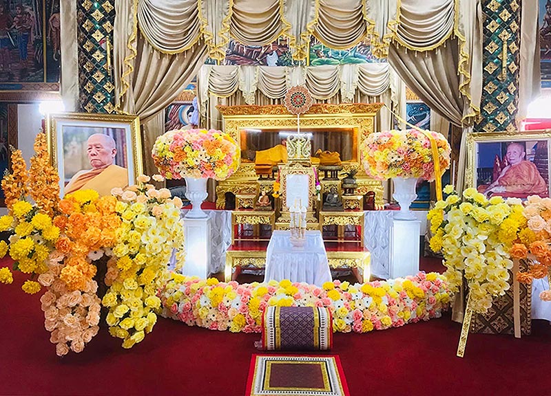 - พระสงฆ์วางดอกไม้จันทน์