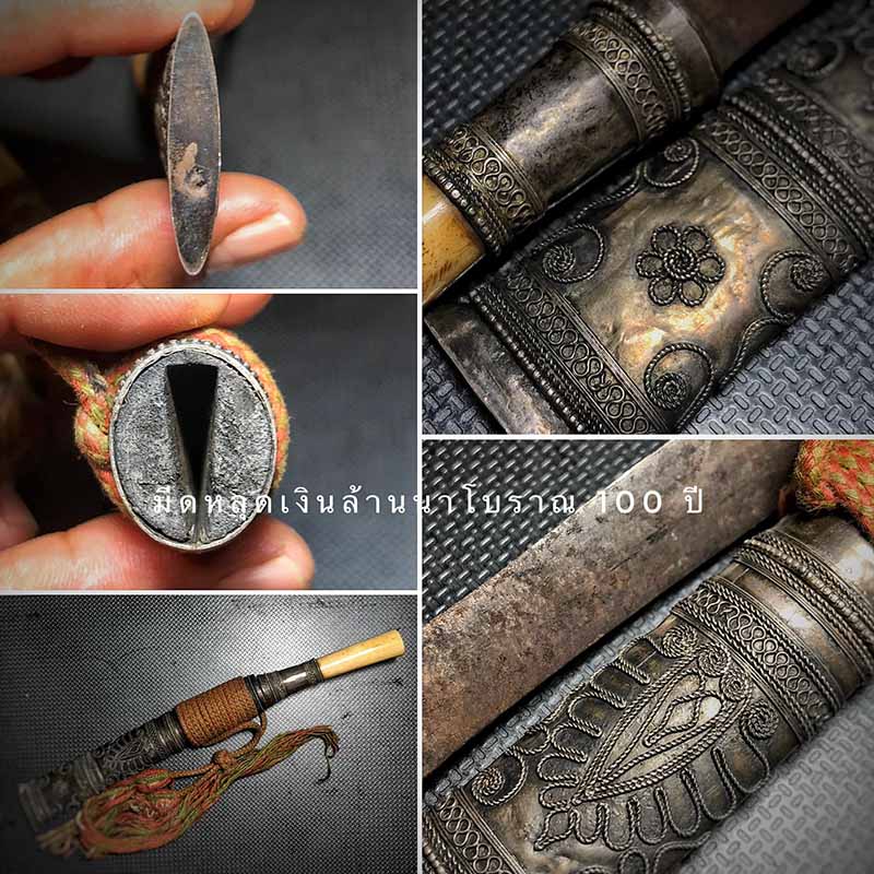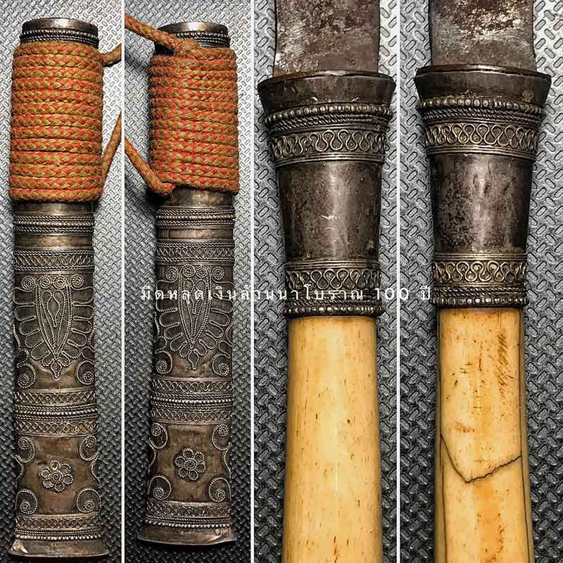 มีดหลูบเงินด้ามงาโบราณล้านนา ขนาดยาว 9 นิ้ว แล่มนี้สวยสมบุญ เข้มขลัง อายุความเก่านับ 100 ปี ยากที่จะหา อาวุธคู่กายของชายล้านนา ของมันต้องมี มีดหลูบล้านนา