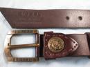 เข็มขัดหนังแท้ สีน้ำตาลเข้ม ขนาดเอว 35-39 นิ้ว แต่งกะโหลกโทโมฮอกทองเหลือง ราคาเบาๆค่ะ |