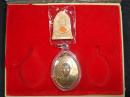13268 ล๊อคเก๊ต รูปพระเอก ฉากทอง นั่งเต็มองค์ รูปไข่ หลังแผ่นเงิน ด้านในบรรจุของมงคล หายากครับ  ปิด  2000  589 2