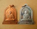 5736 เหรียญซุ้มระฆัง หลวงพ่อเกษม เขมโก รุ่น บำบัดทุกข์ บำรุงสุข ปี37 เนื้อเงิน+กระไหล่ทอง แพคู่ ครับ  ปิด  800  6471 9