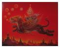 806 ภาพพิมพ์ "มารผจญ ยุคใหม่" ภาพจิตกรรมฝาผนัง ในวิหารวัดร่องขุ่น ฝั่งพญามาร ขนาด 69 x 79 เซนติเมตรฝีม  1000