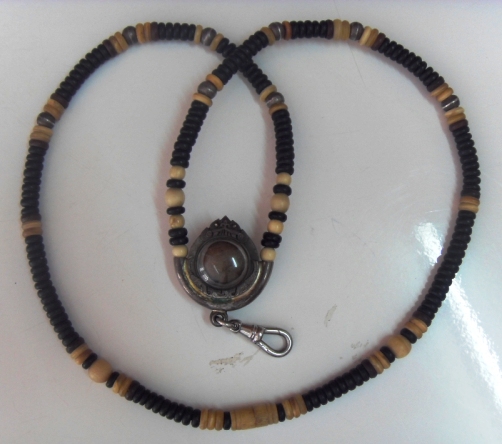 สร้อยงาร้อยสลับเม็ดเงินและกะลา หัวสร้อยเป็นลูกอมหลวงปู่ทิม เจ้าของเดิมห้อยมานานจนฉ่ำ ความยาวทั้งหมดประมาณ 58 ซม. สวมลงหัวแบบไม่ต้องหมุนออก สวยมากครับ นานๆจะได้มาสักเส้น ไม่แพง